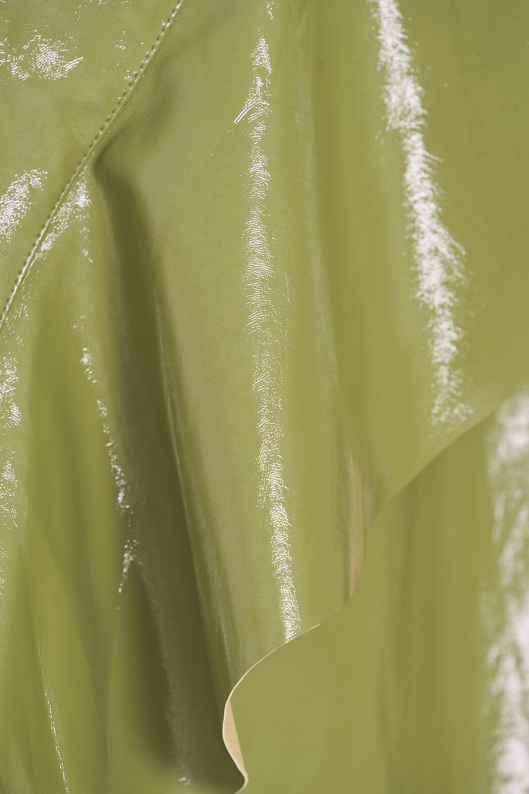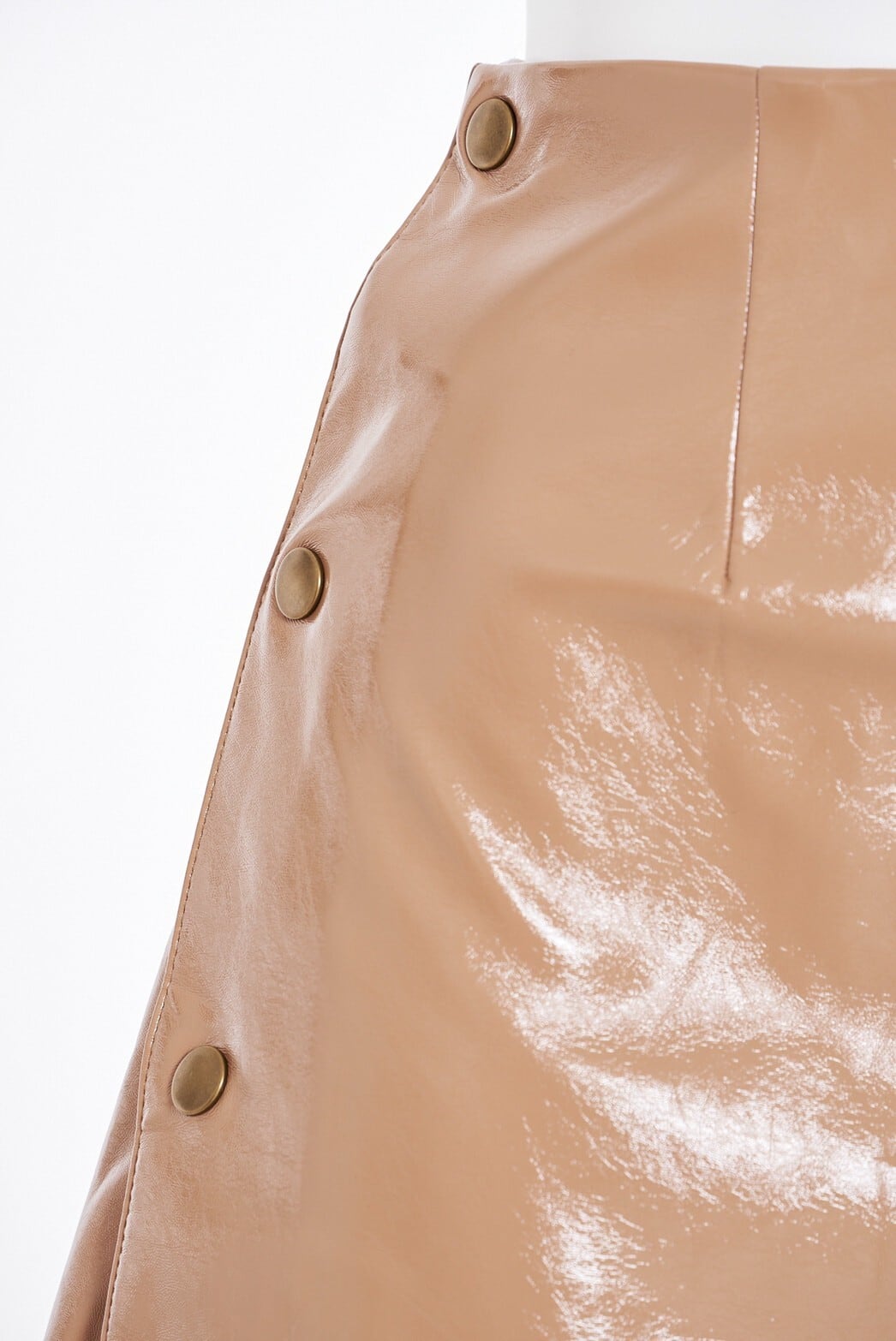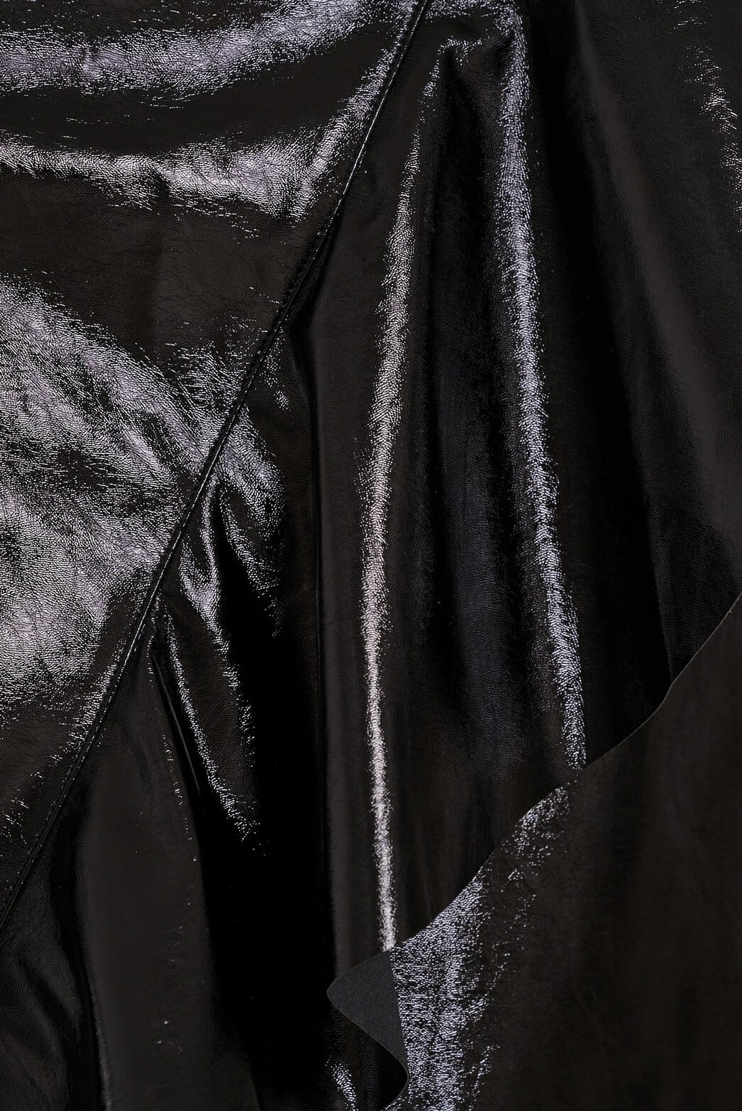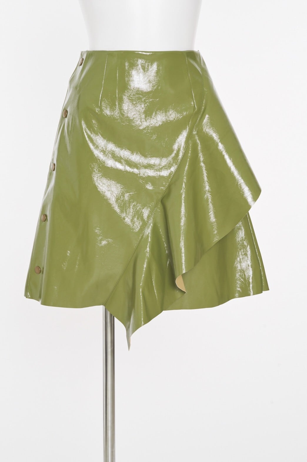 大きなフリルがポイントになった、フェティッシュなエナメル素材の台型スカート。