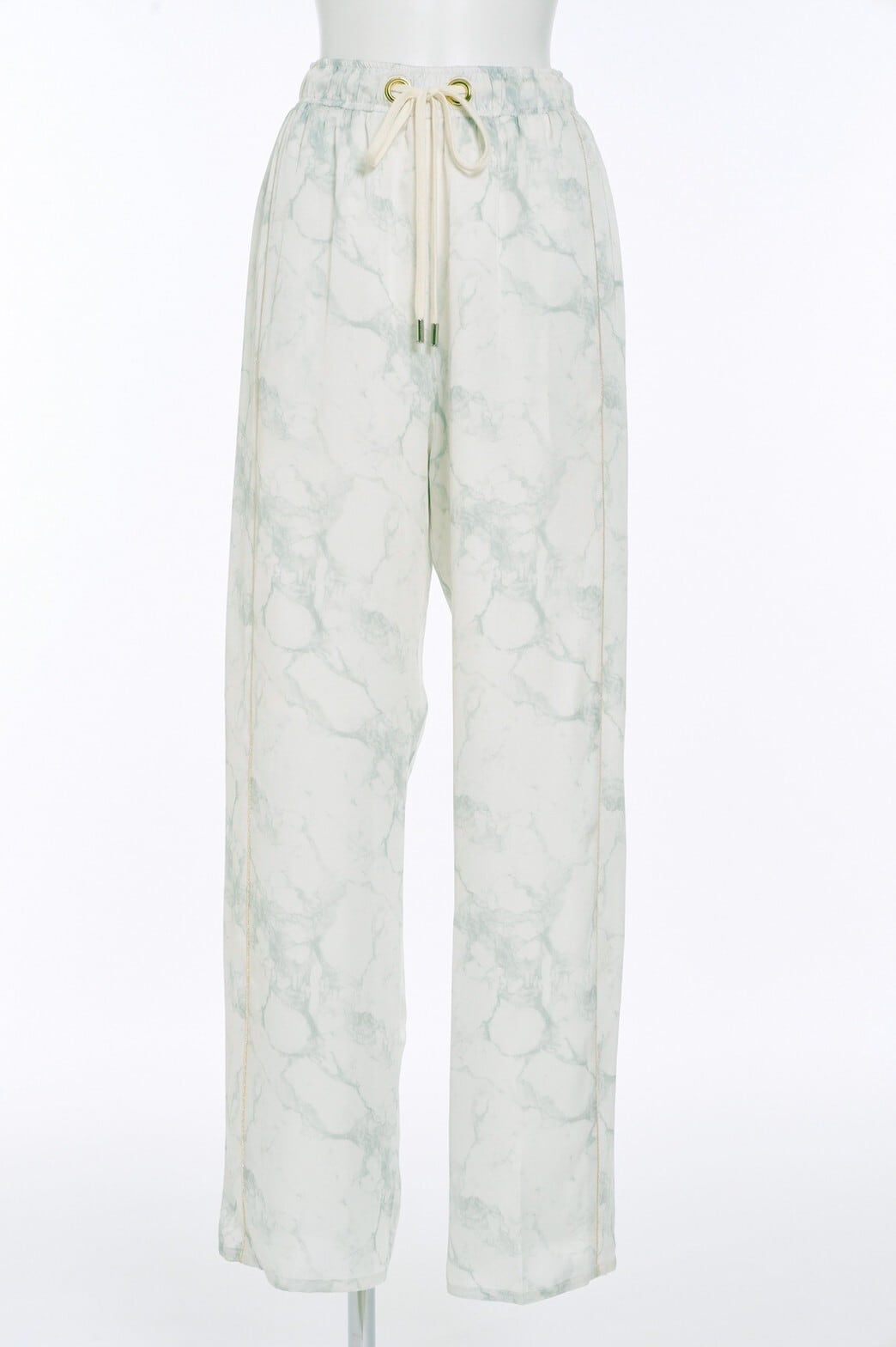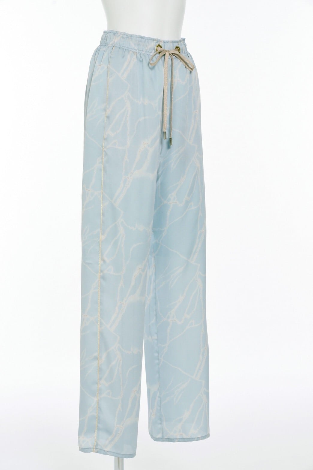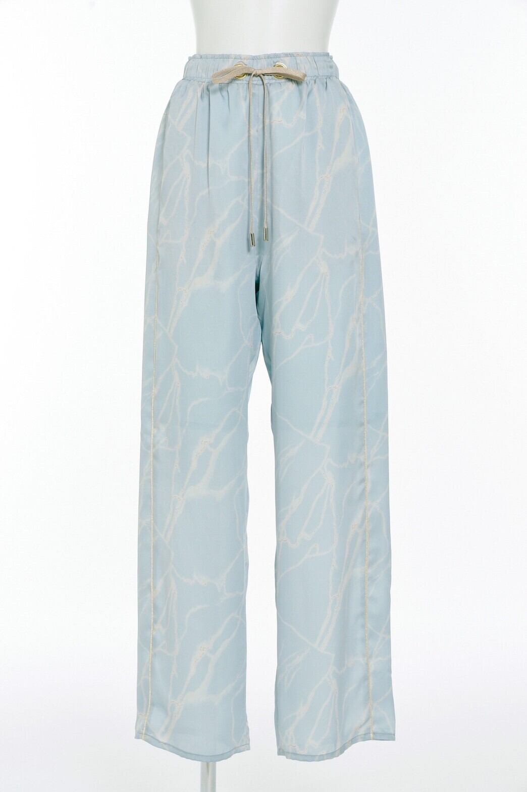 アンニュイな存在感と上品な高級感を与えるアイレットリボンパンツ。