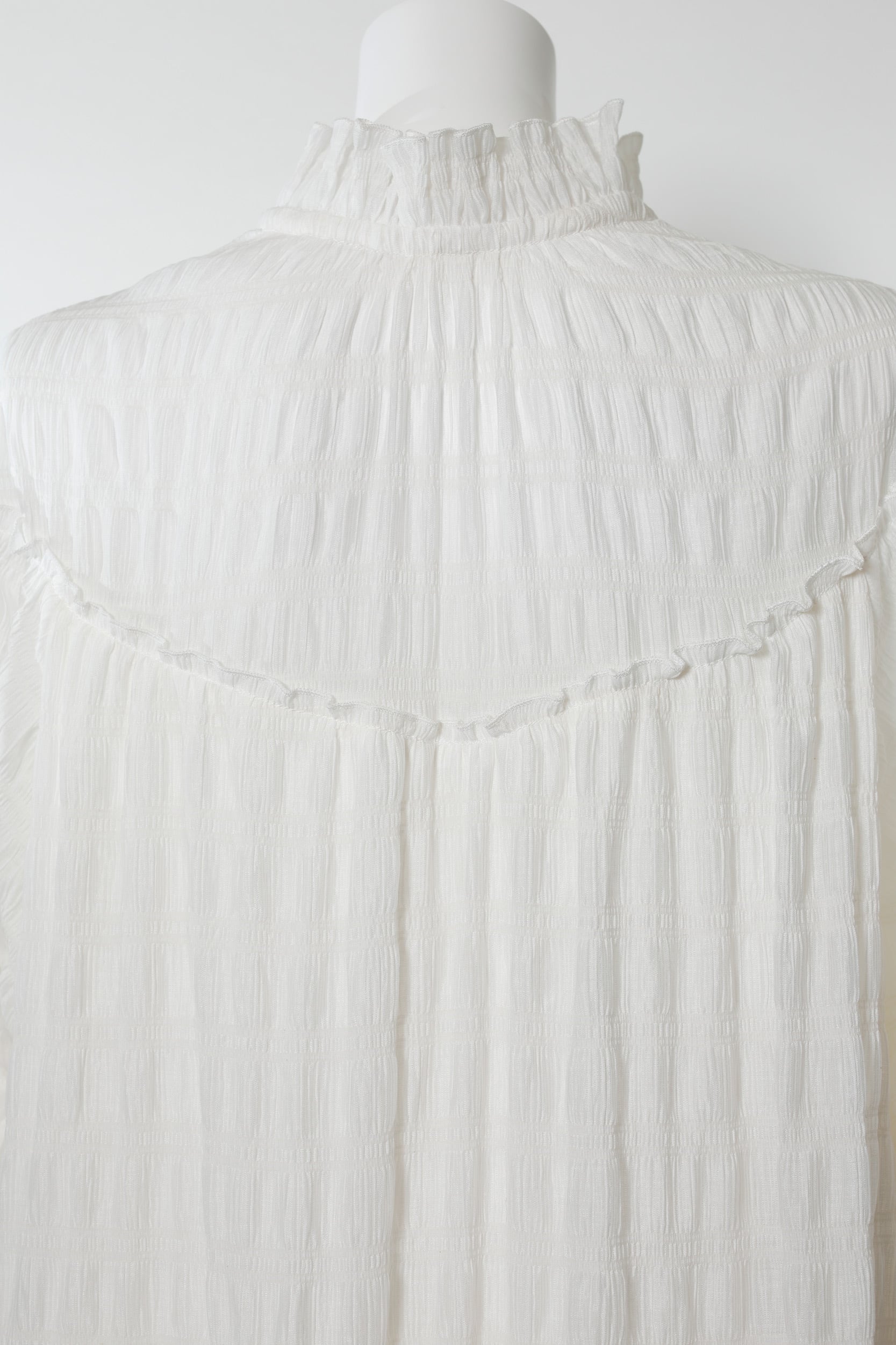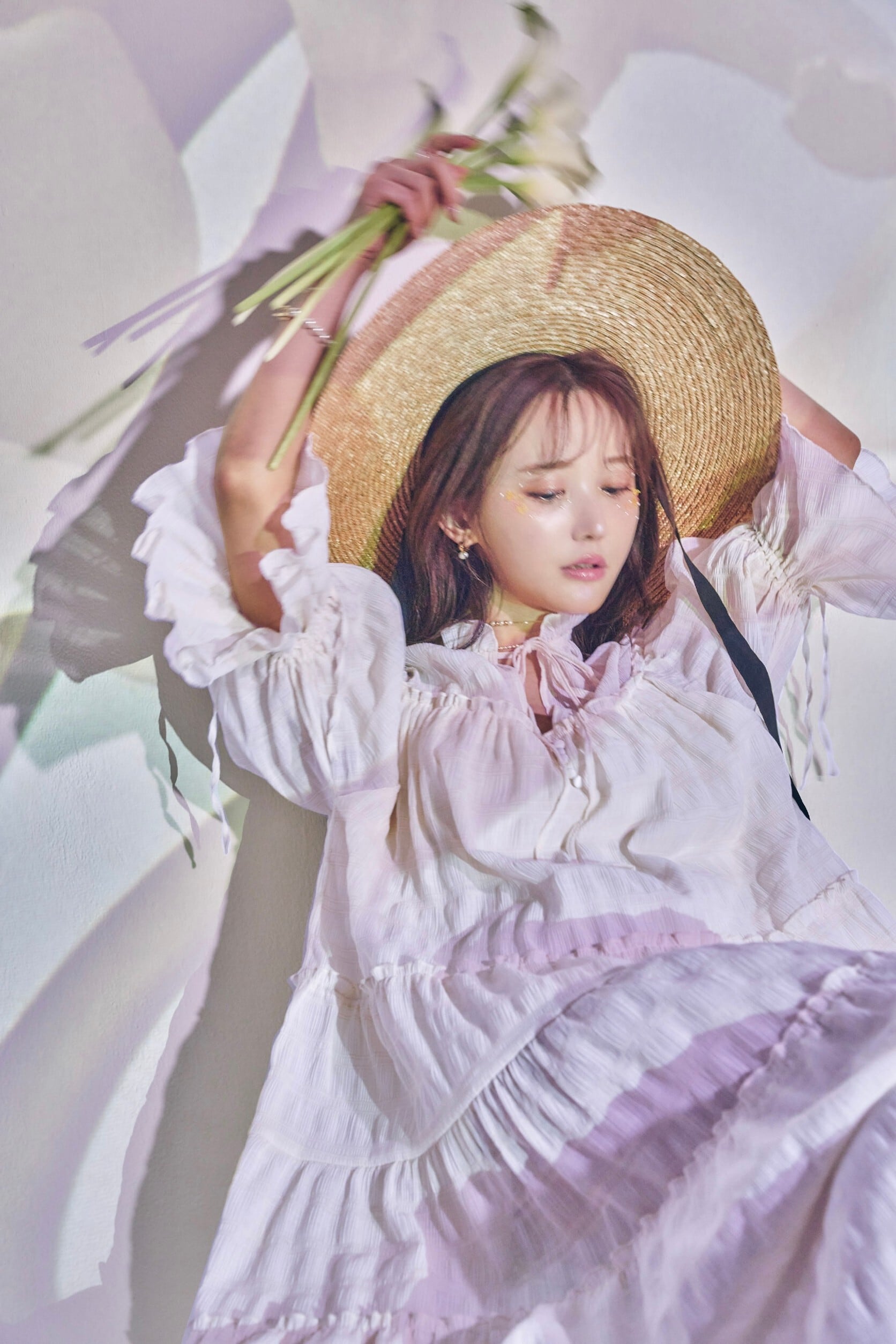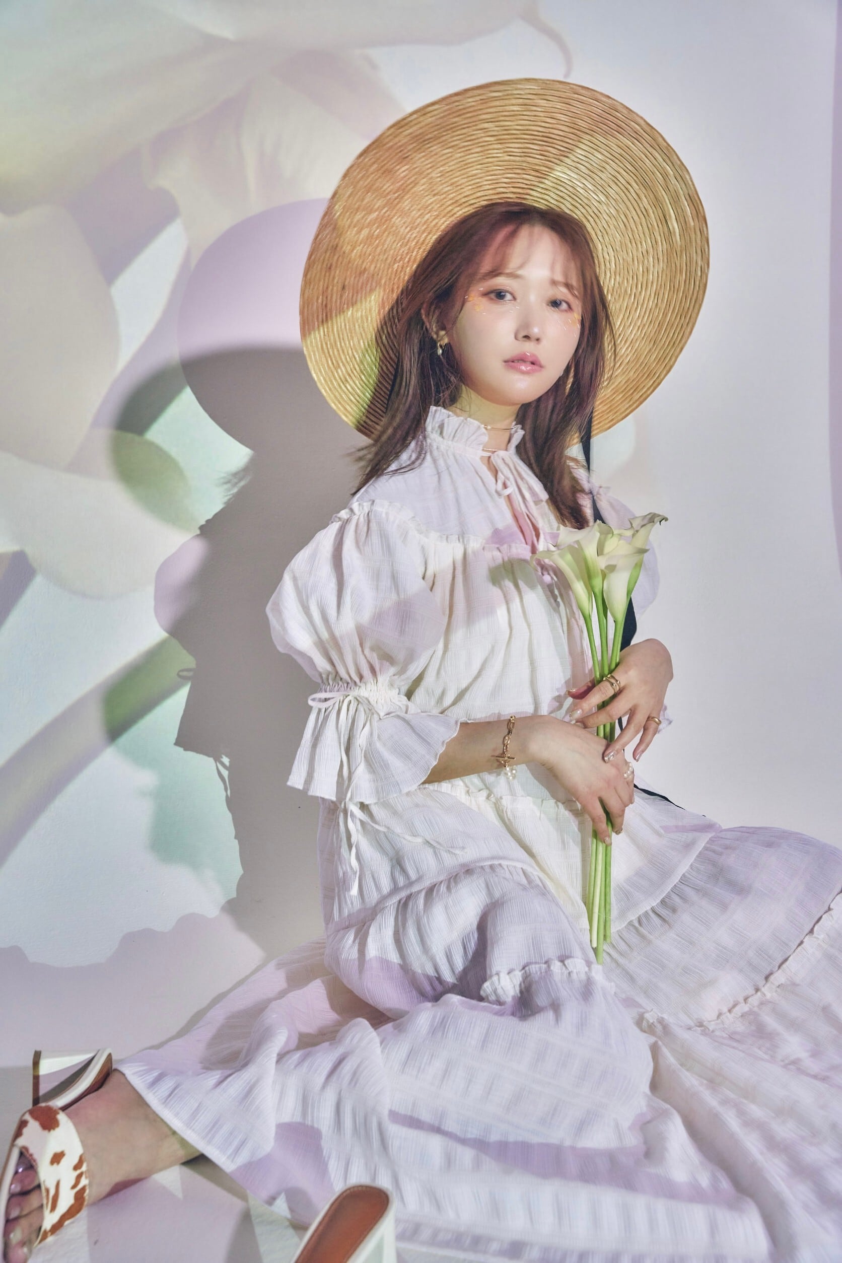透け感のある軽やかなボリュームシフォンが揺れるたび光を通し、天女のようにエアリーなオーラを放ちます。