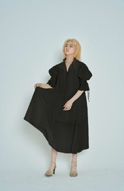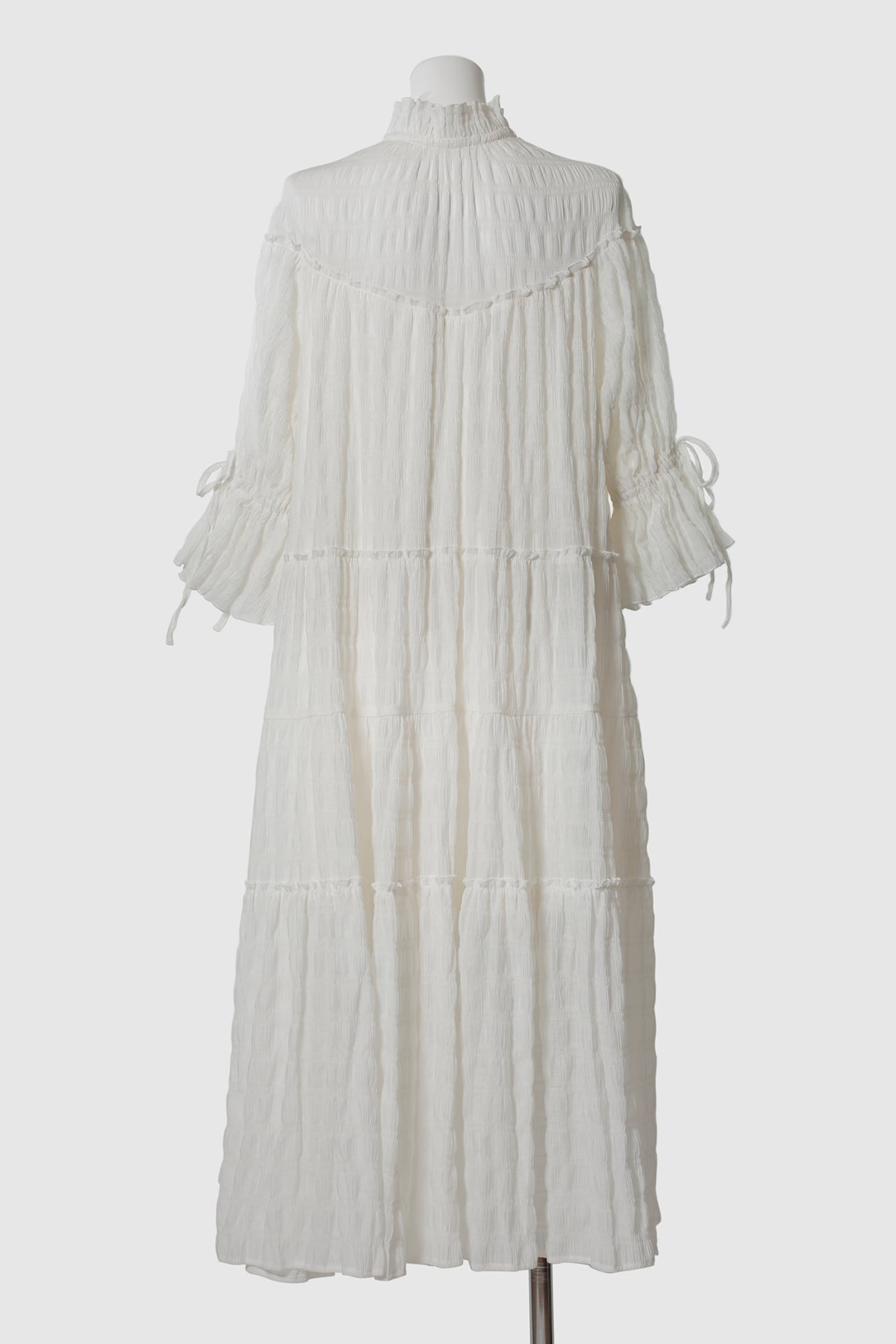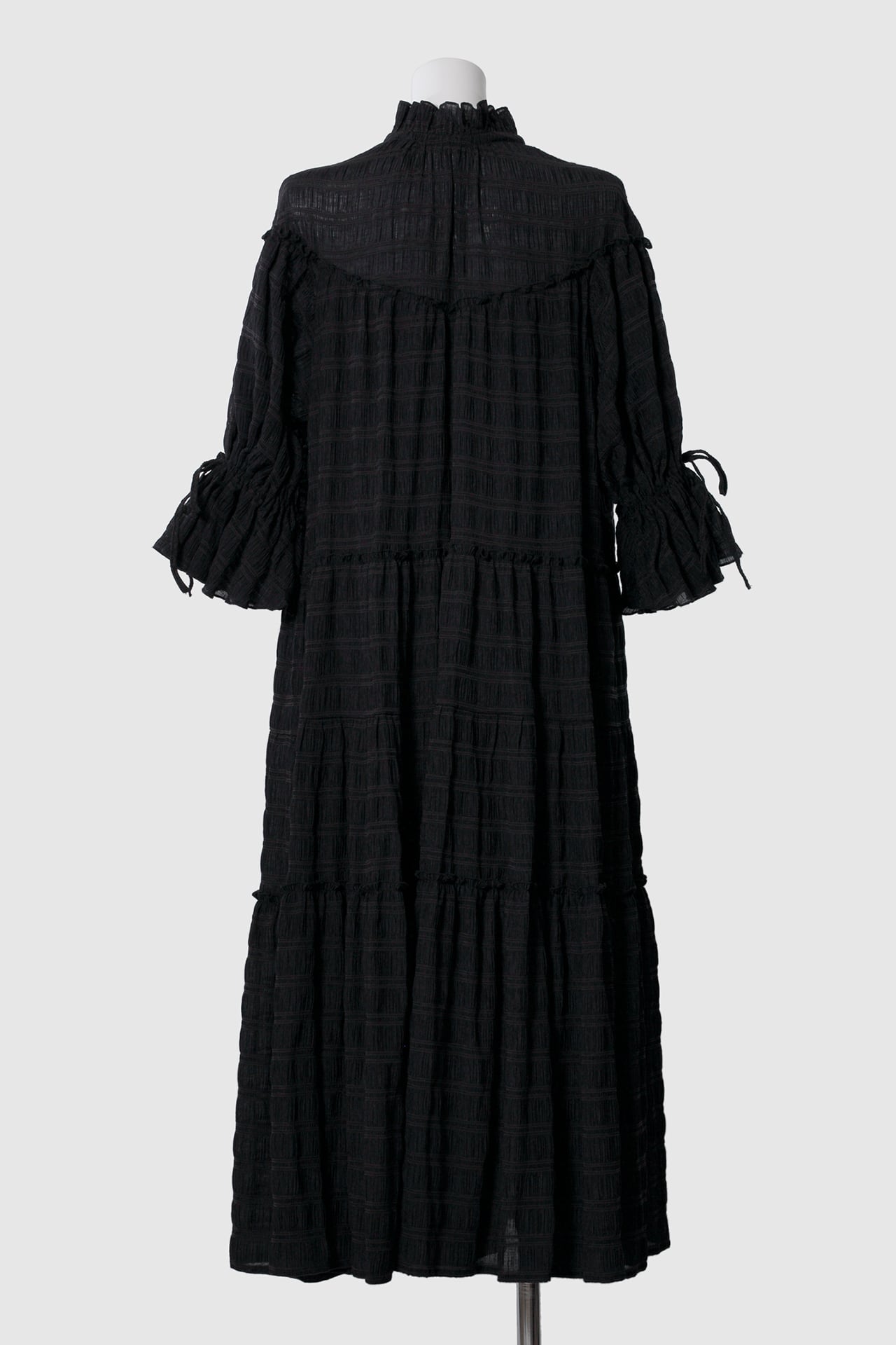 贅沢に用尺をたっぷりと使った、儚げなムードを纏うティアードドレス。