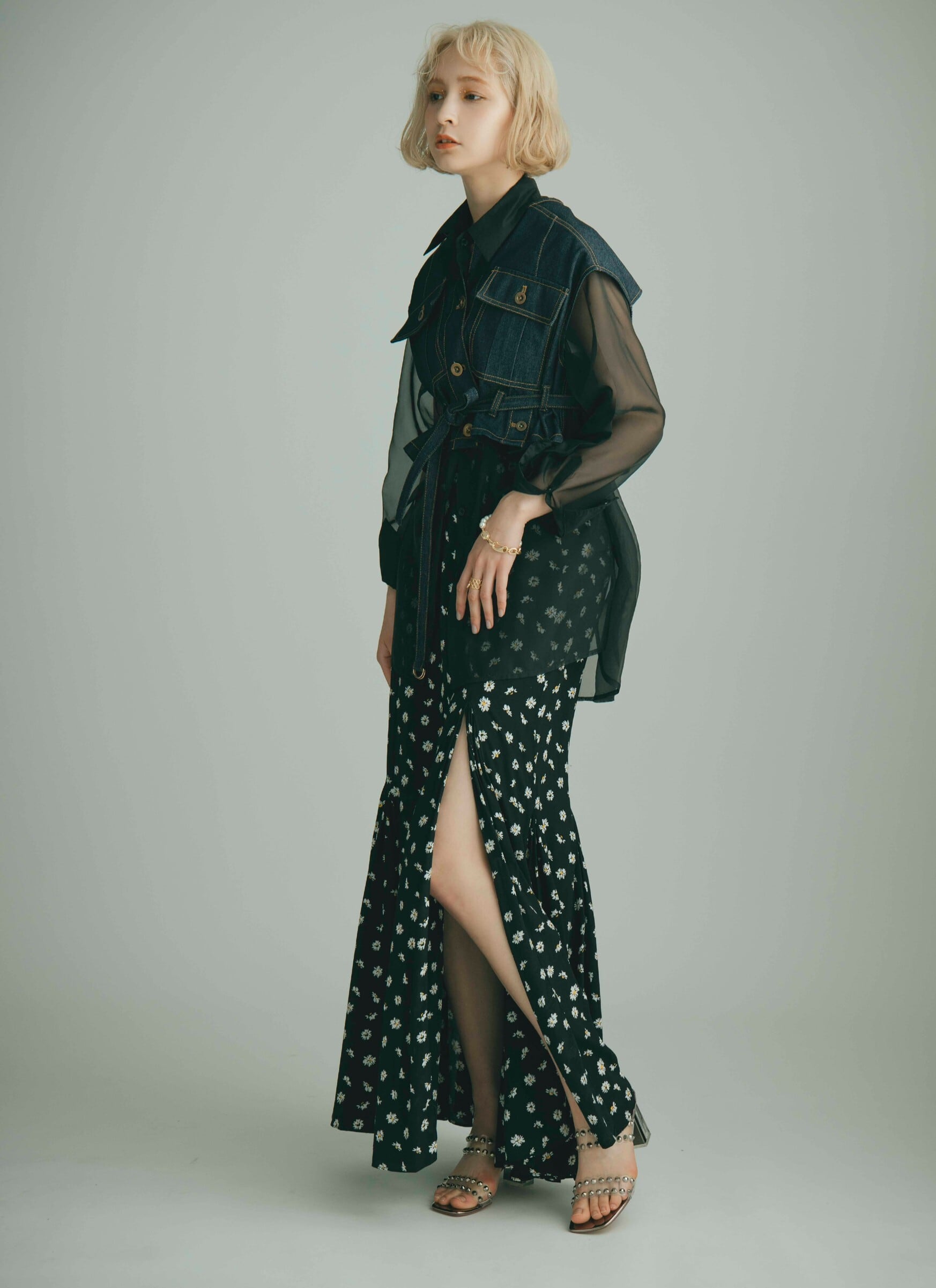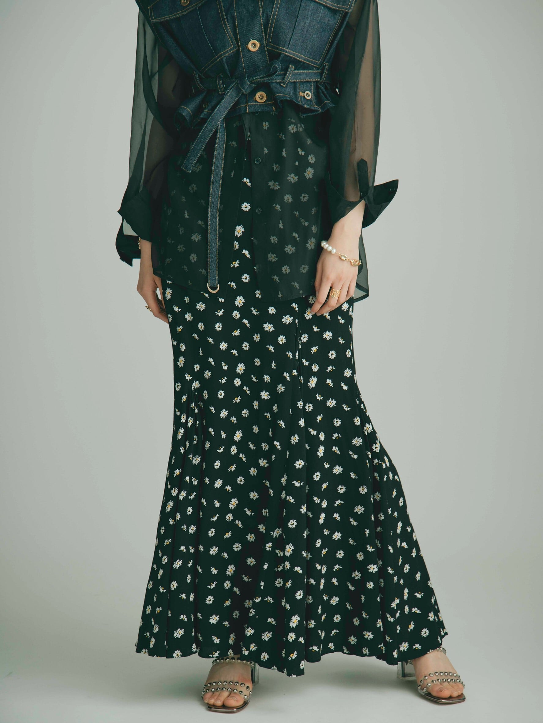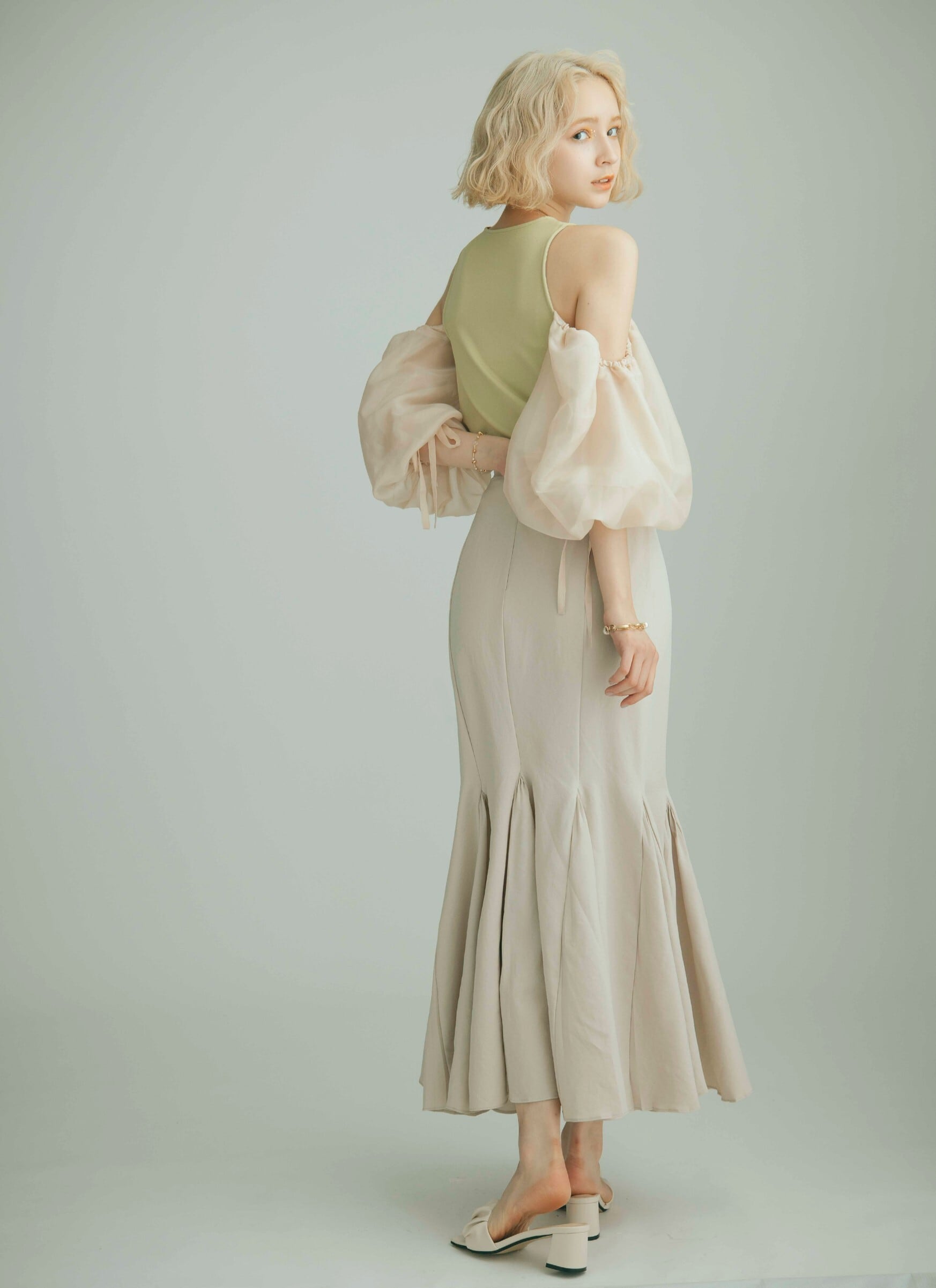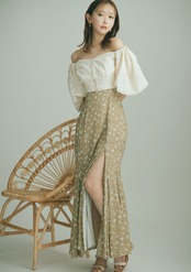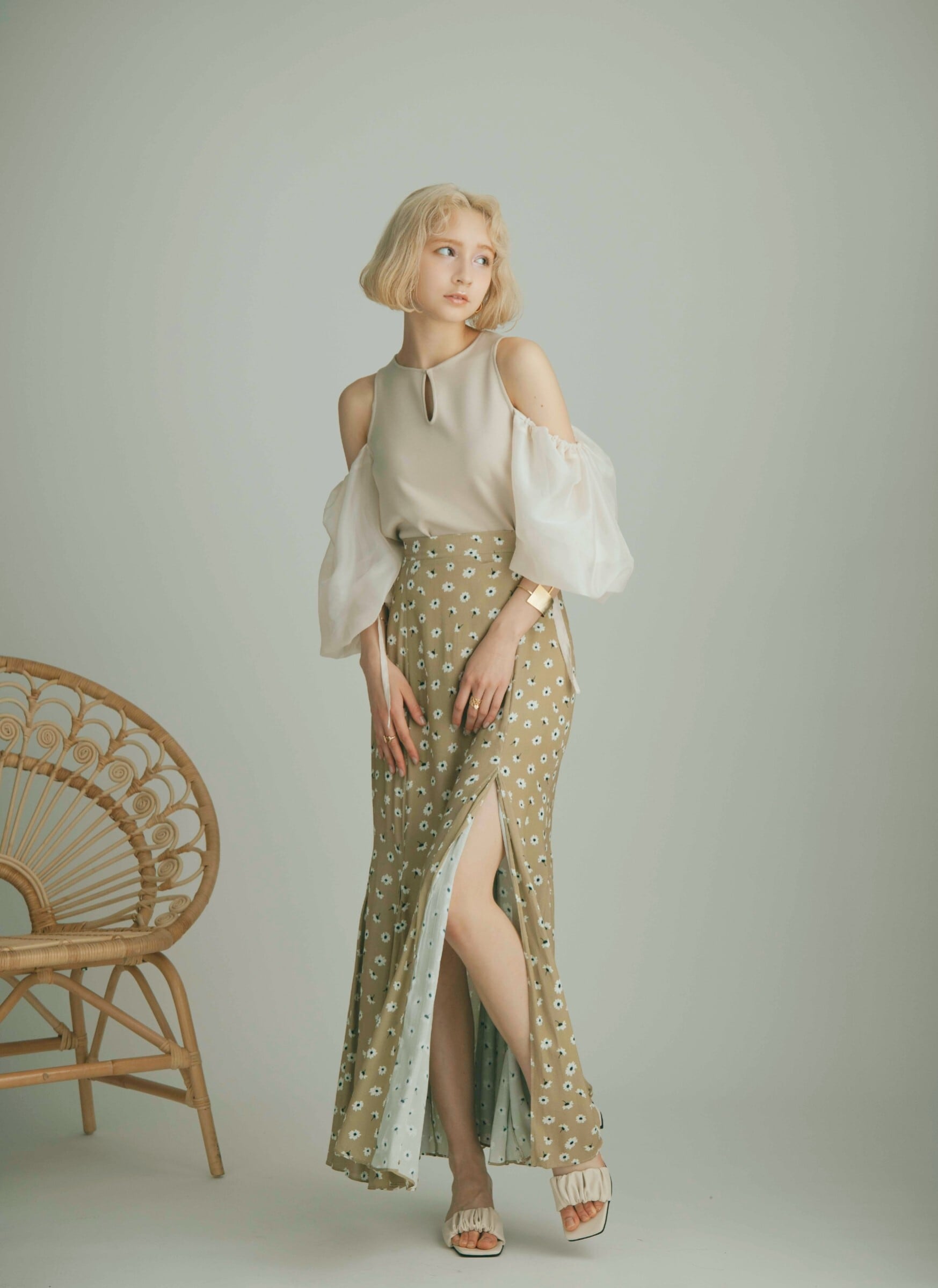 花びらのように揺れる柔らかな落ち感のある生地を使用した、ハイウエストのスリットマーメイドスカート。