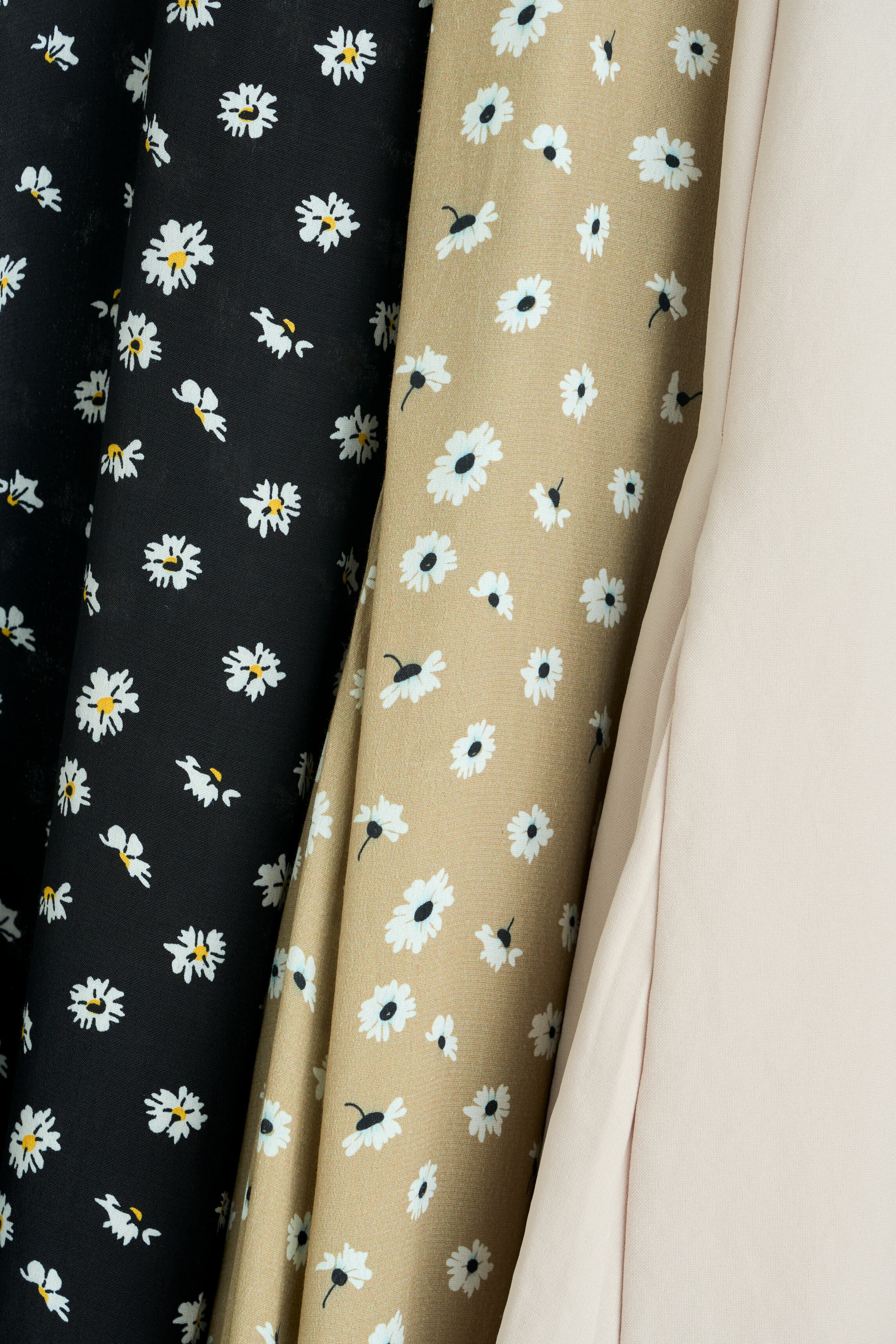 マーガレットが映えるベージュ・ブラックに加え、万能な無地のエクリュの3色展開。