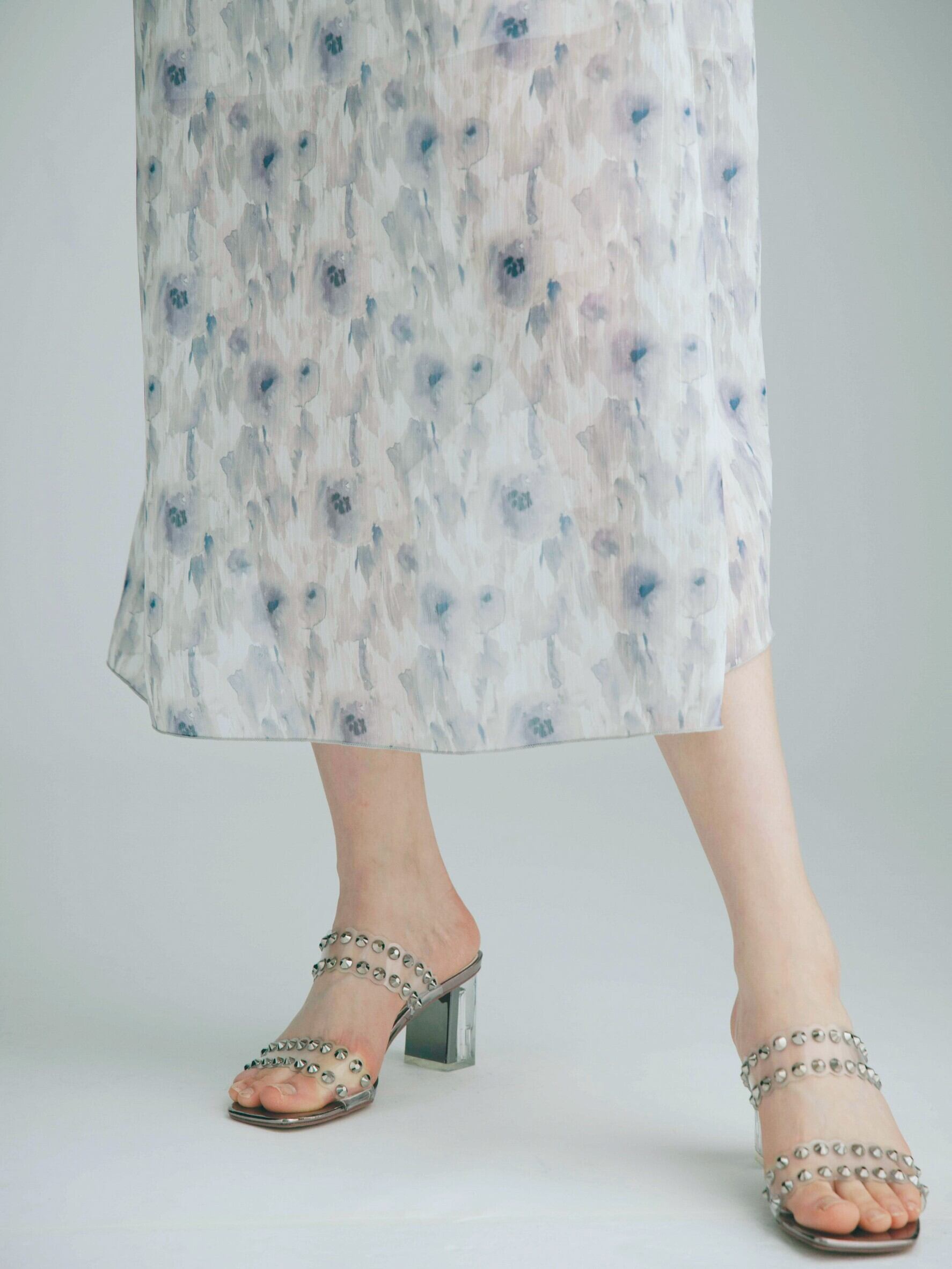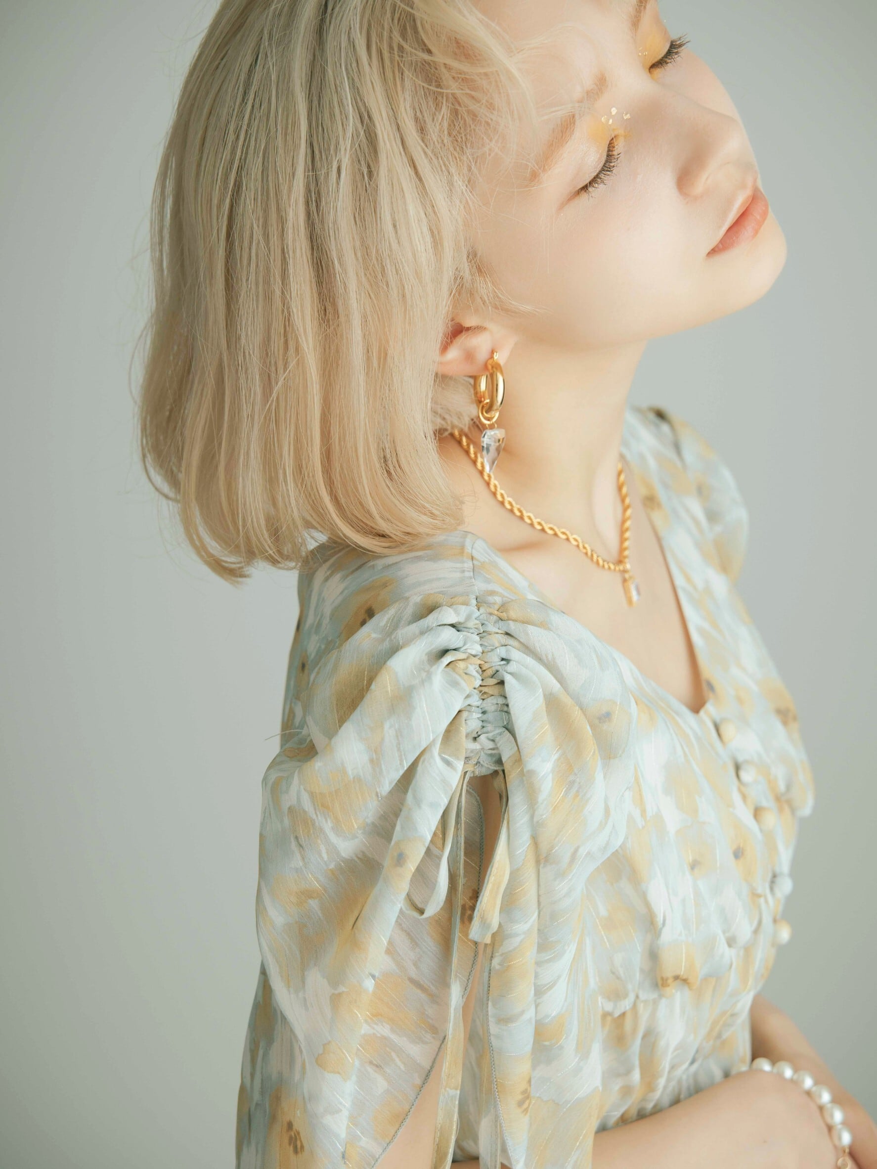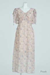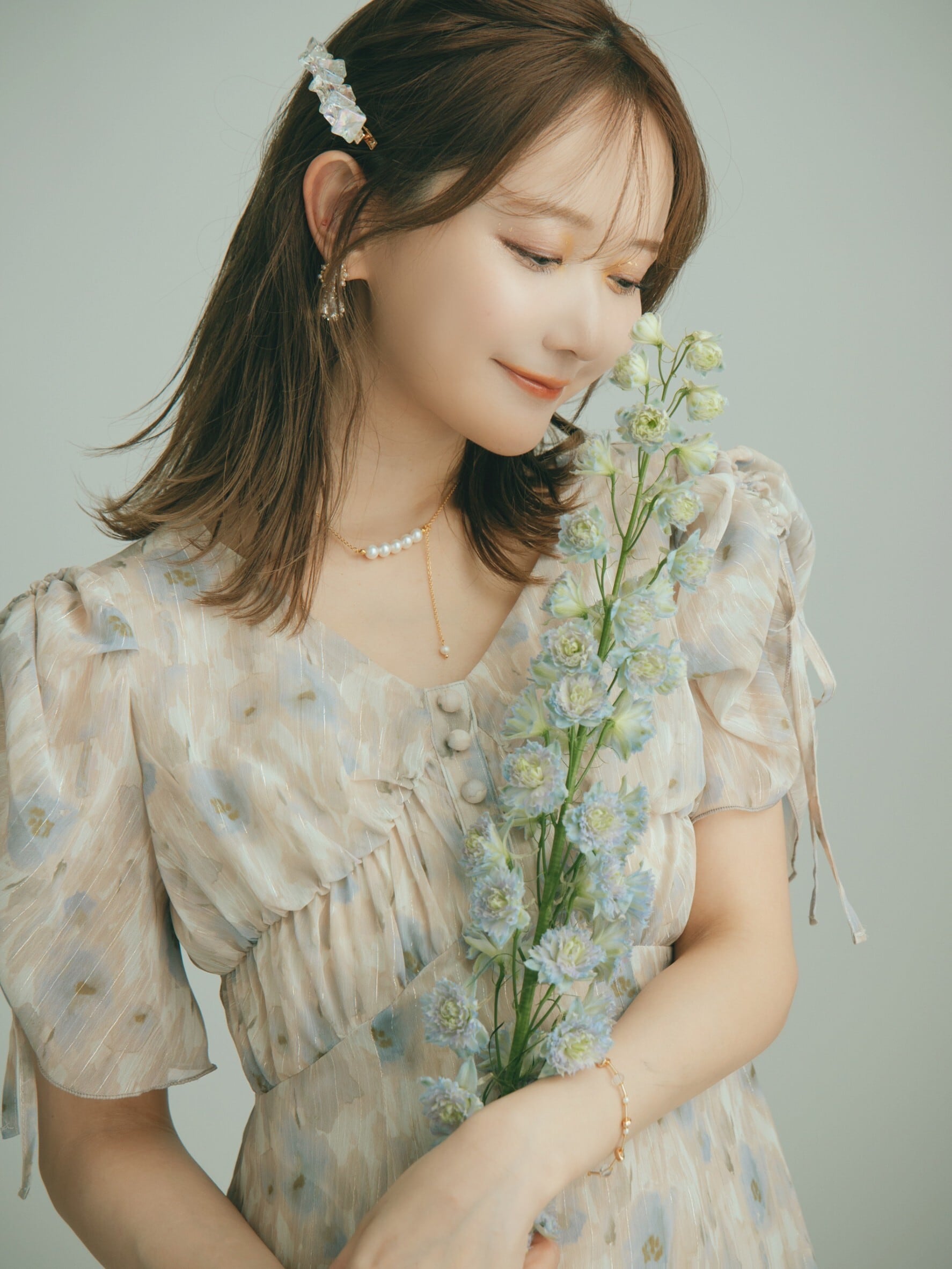 水彩画を落とし込んだ抽象花柄が、アンニュイで儚げなムードを纏う楊柳シフォンドレス。