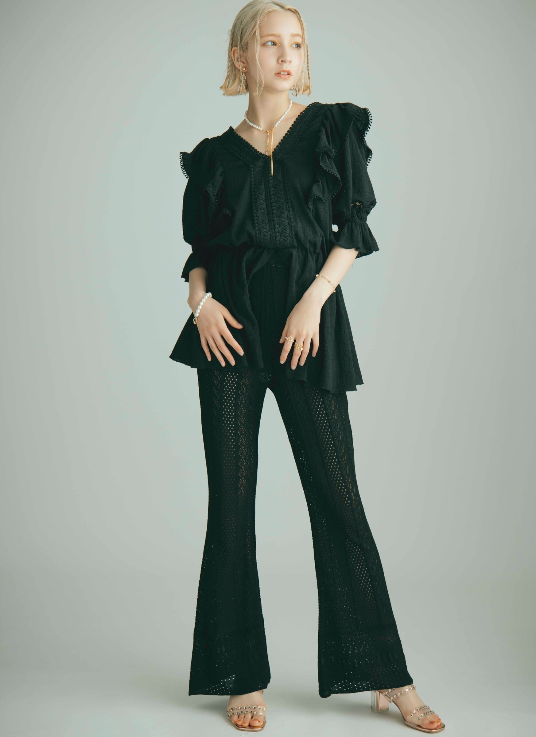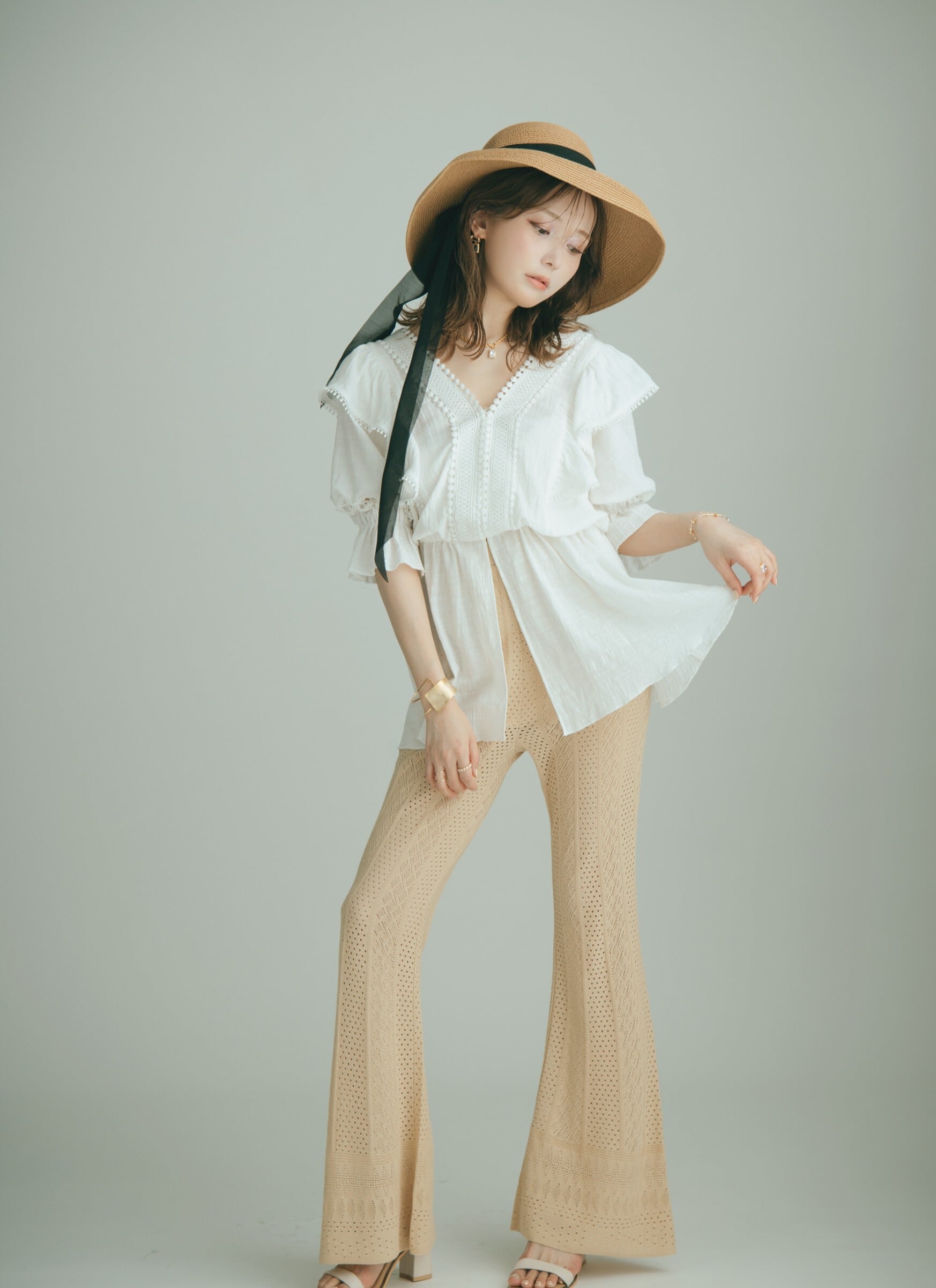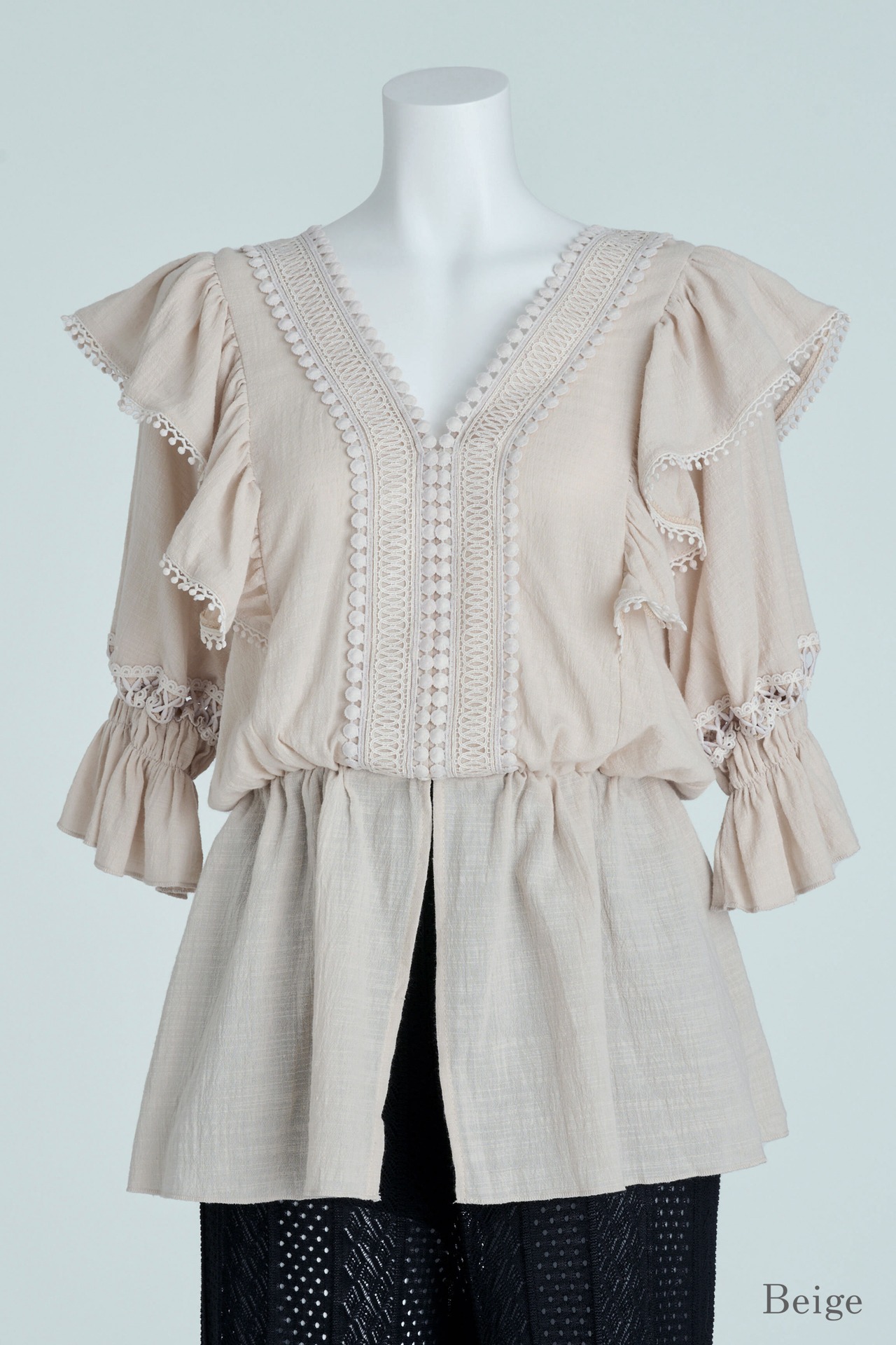 たっぷりと施した繊細なはしごレースのブラウスは、ヴィンテージのブラウスのような手の込んだデザイン。