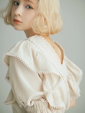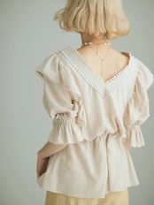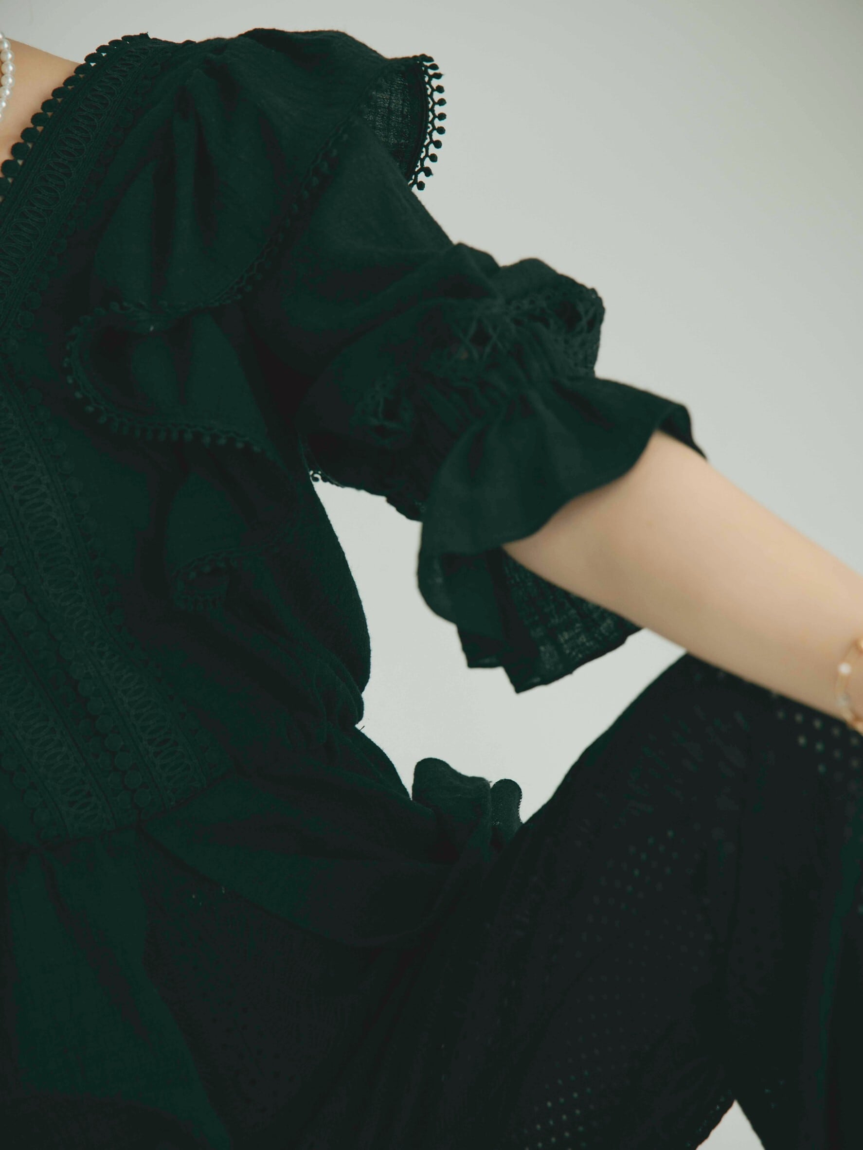 ふんわりとボリュームのあるパフスリーブにはクロスレースを、