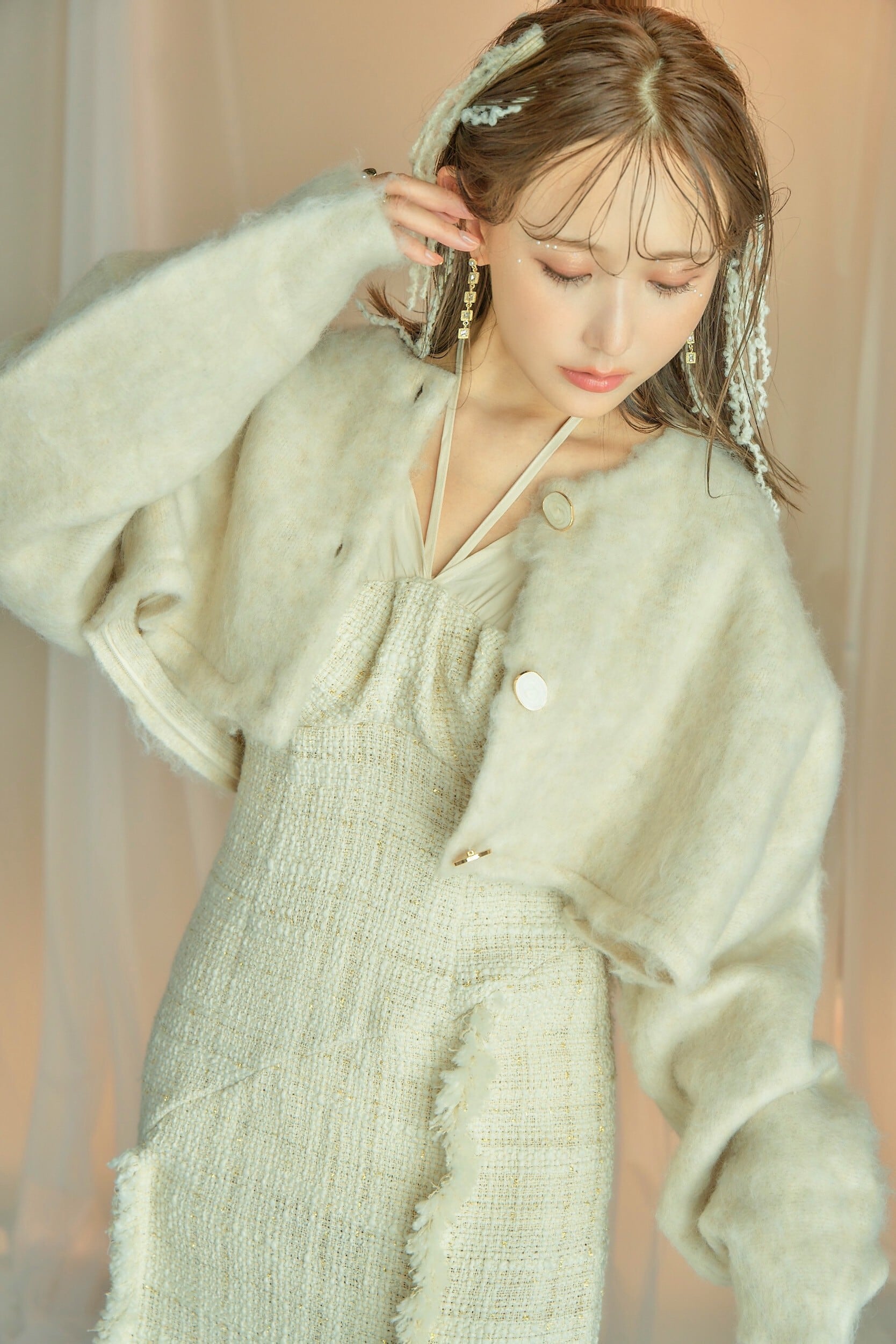 ふんわりとしたリッチな起毛感のモヘアミックスニット素材を使用した