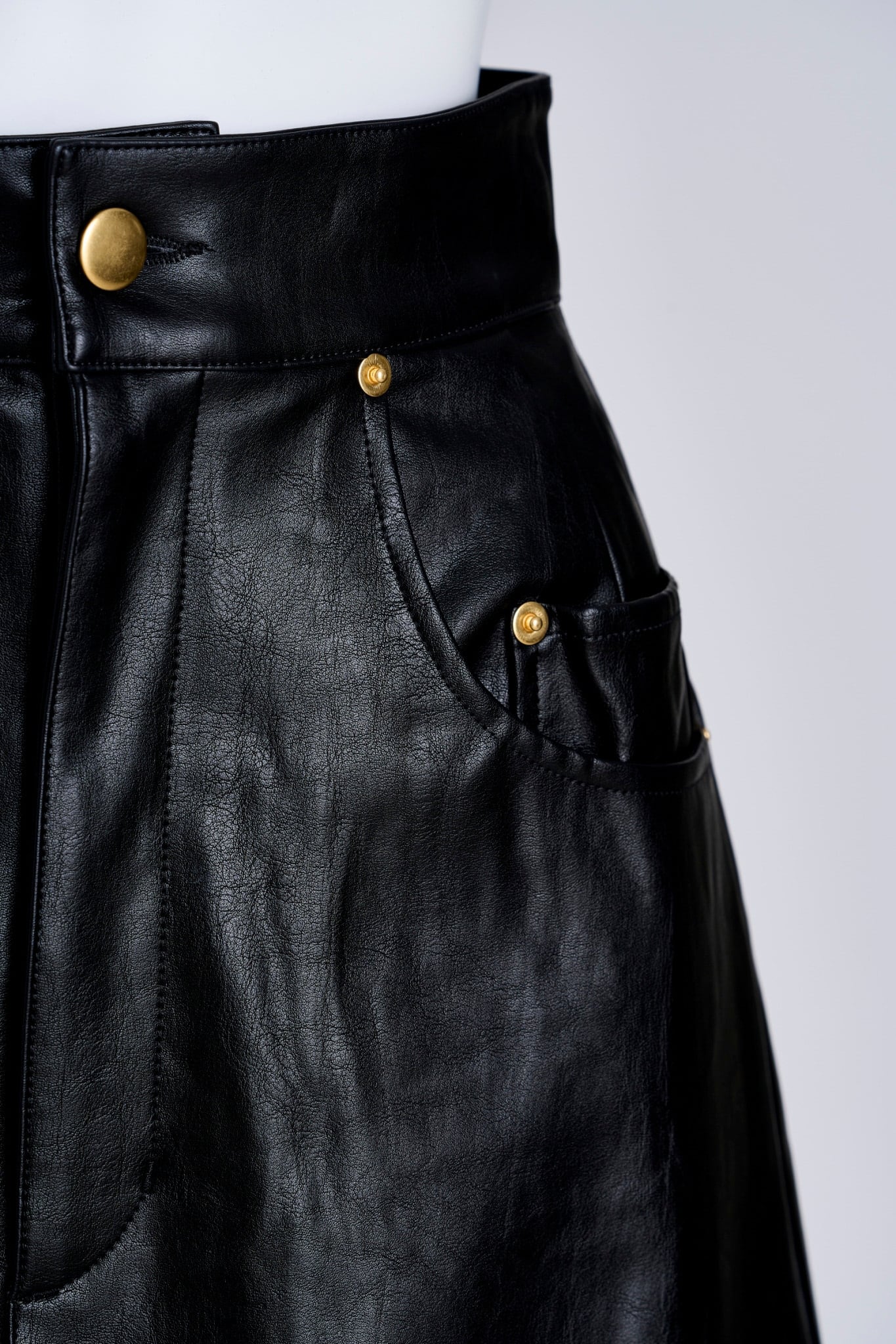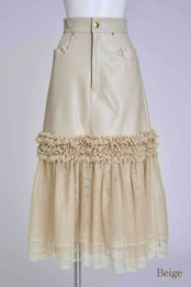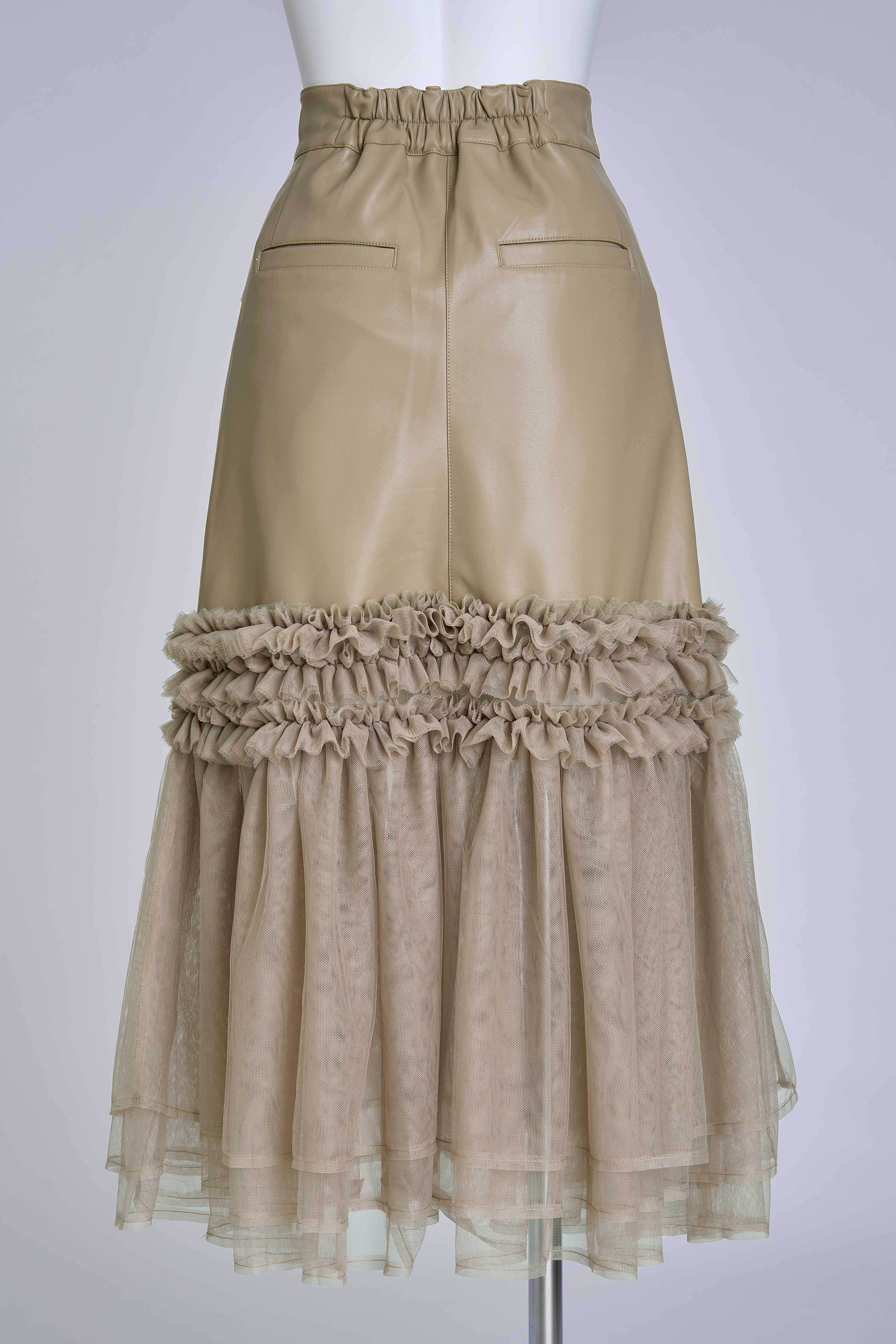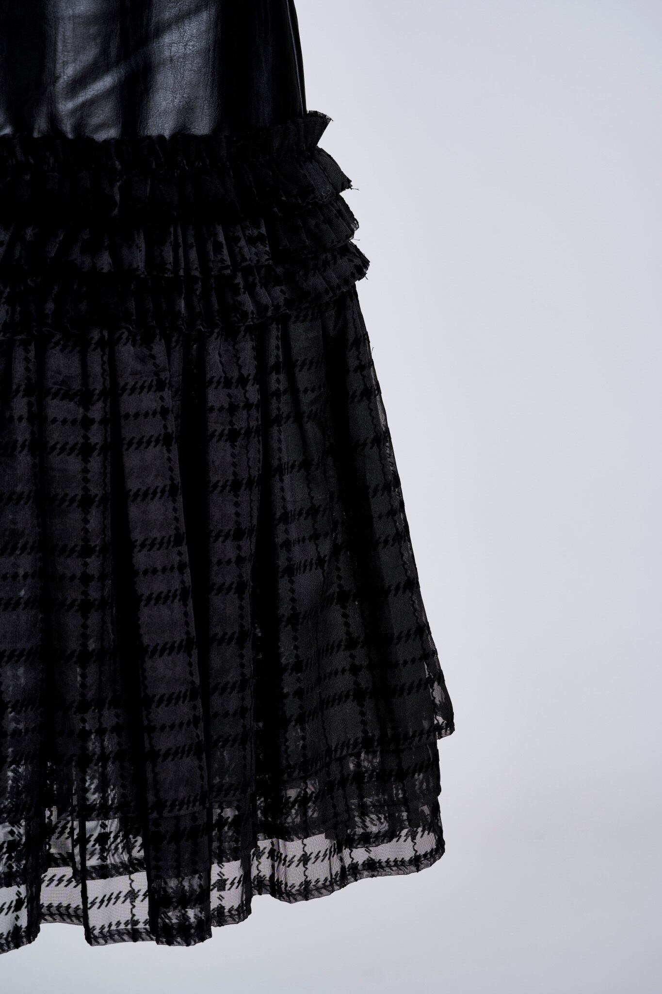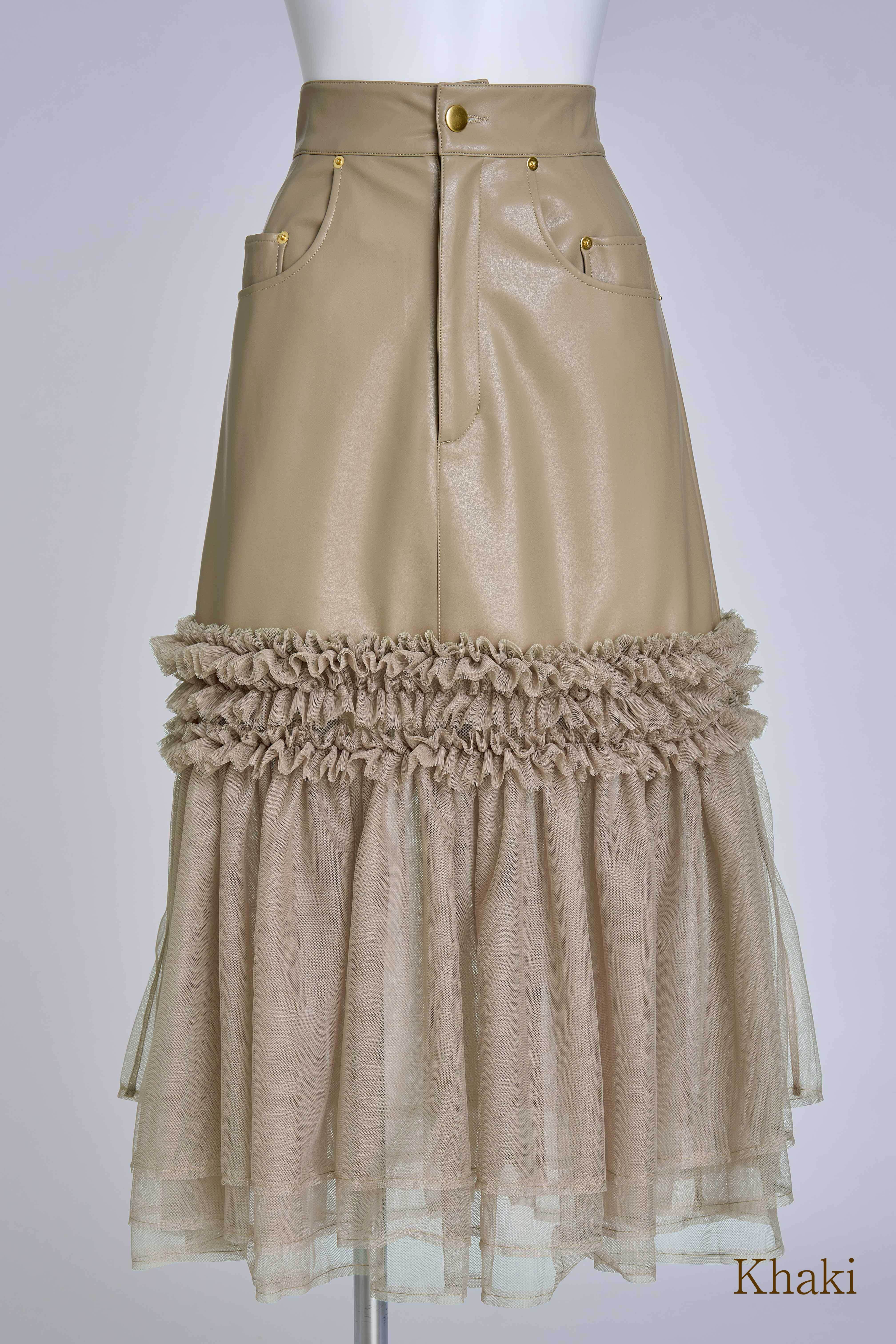 フレアのレザースカートにシアーなチュールをドッキングしたフェティッシュなスカート。
