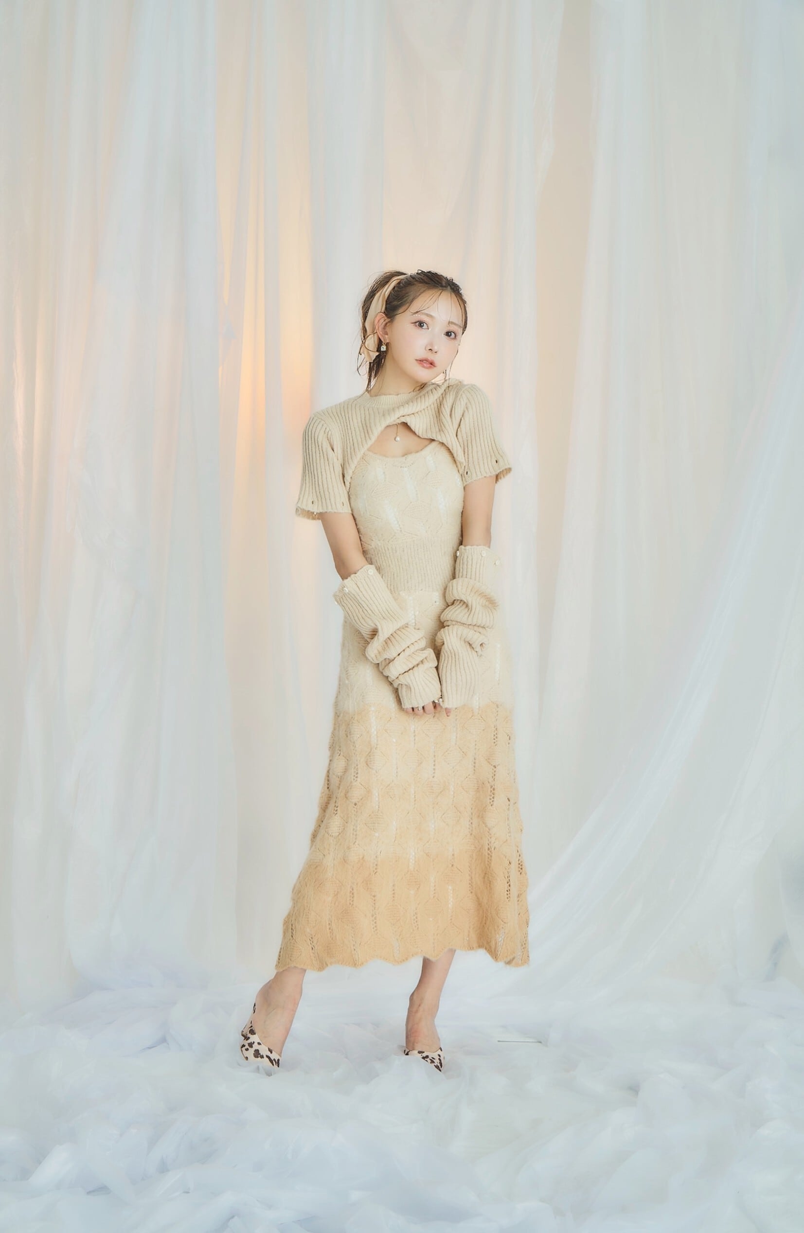 ニットキャミドレスとリブニットトップスのセットアップ。