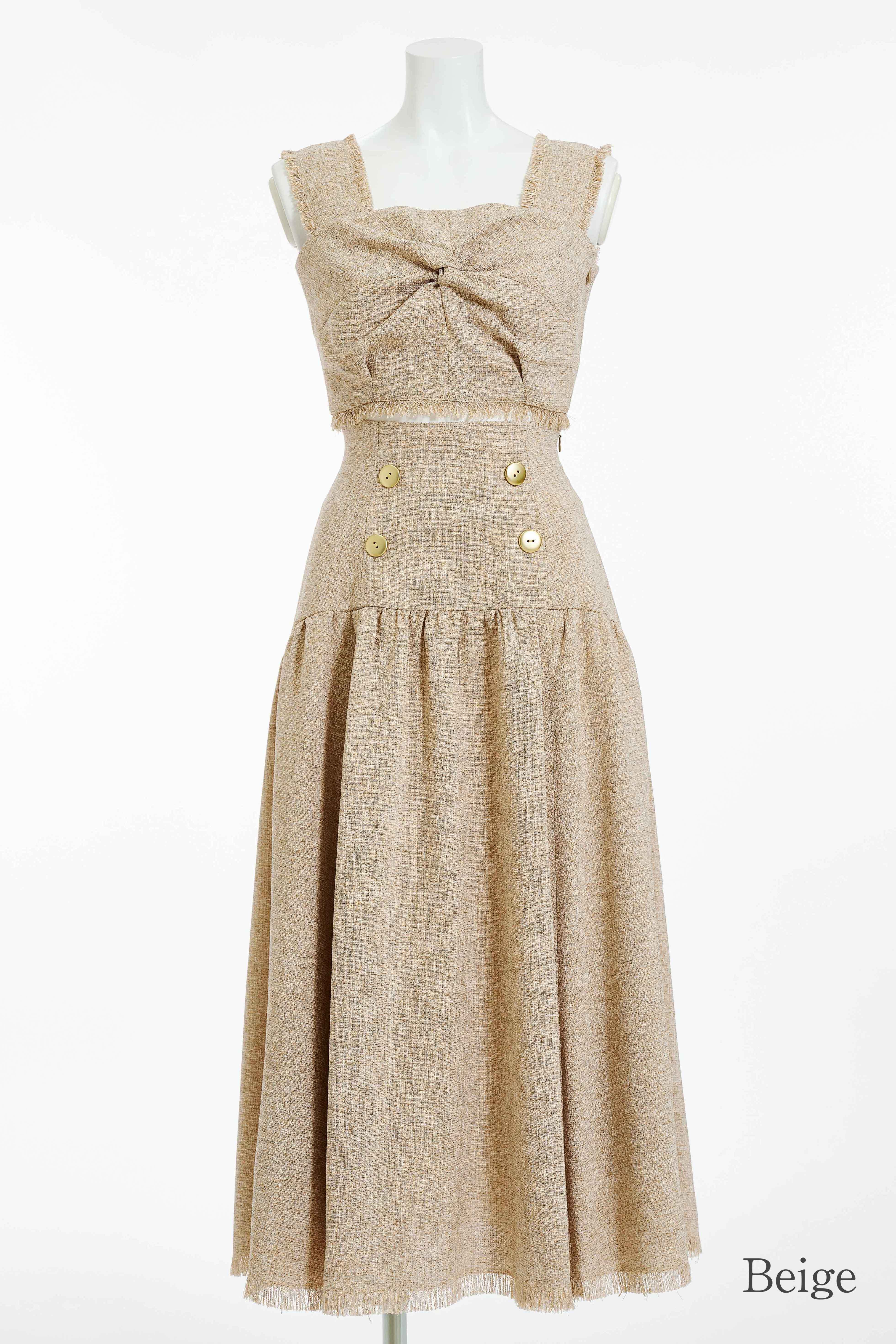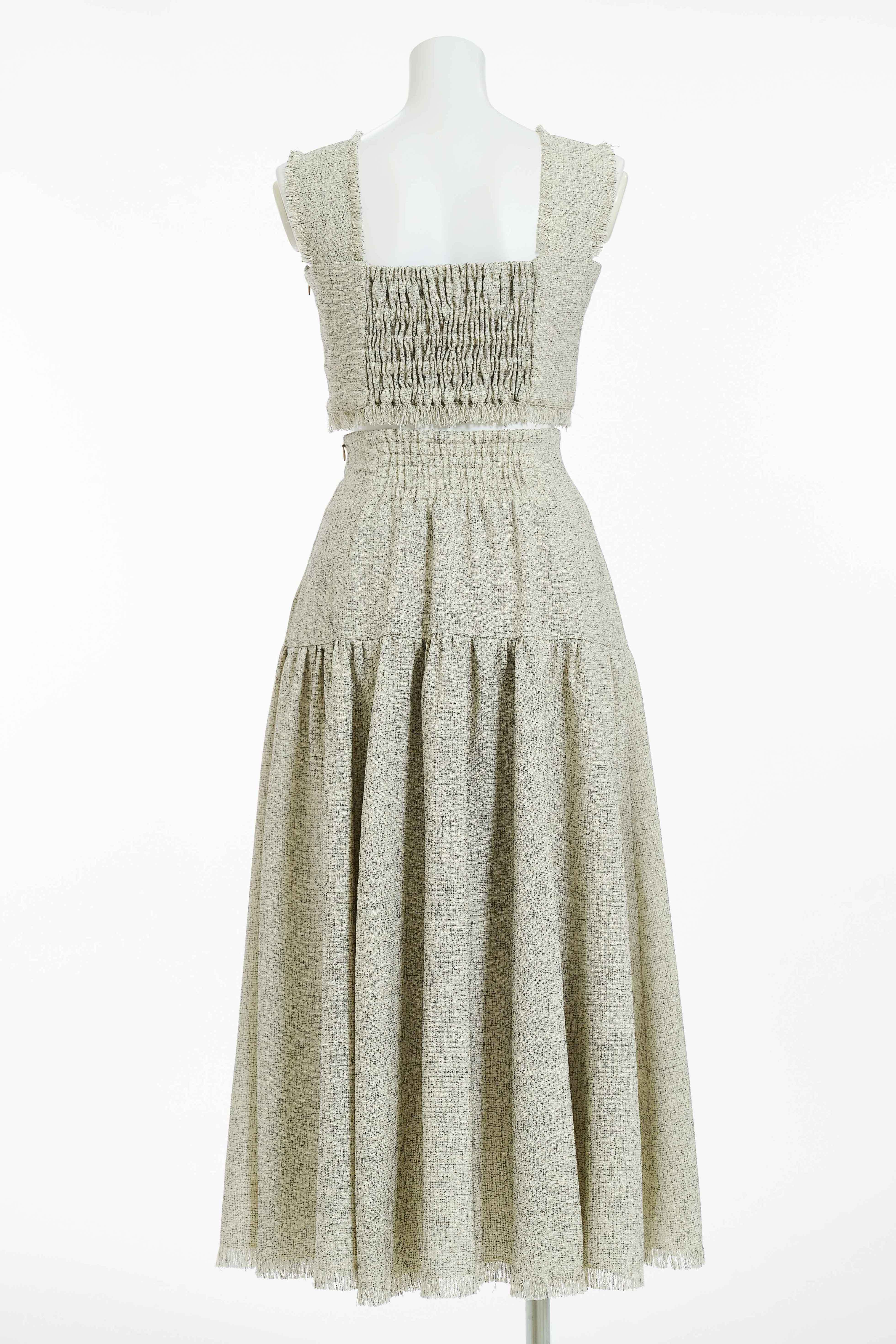 サマーツイードを使用した、ビスチェとスカートのセットアップ。