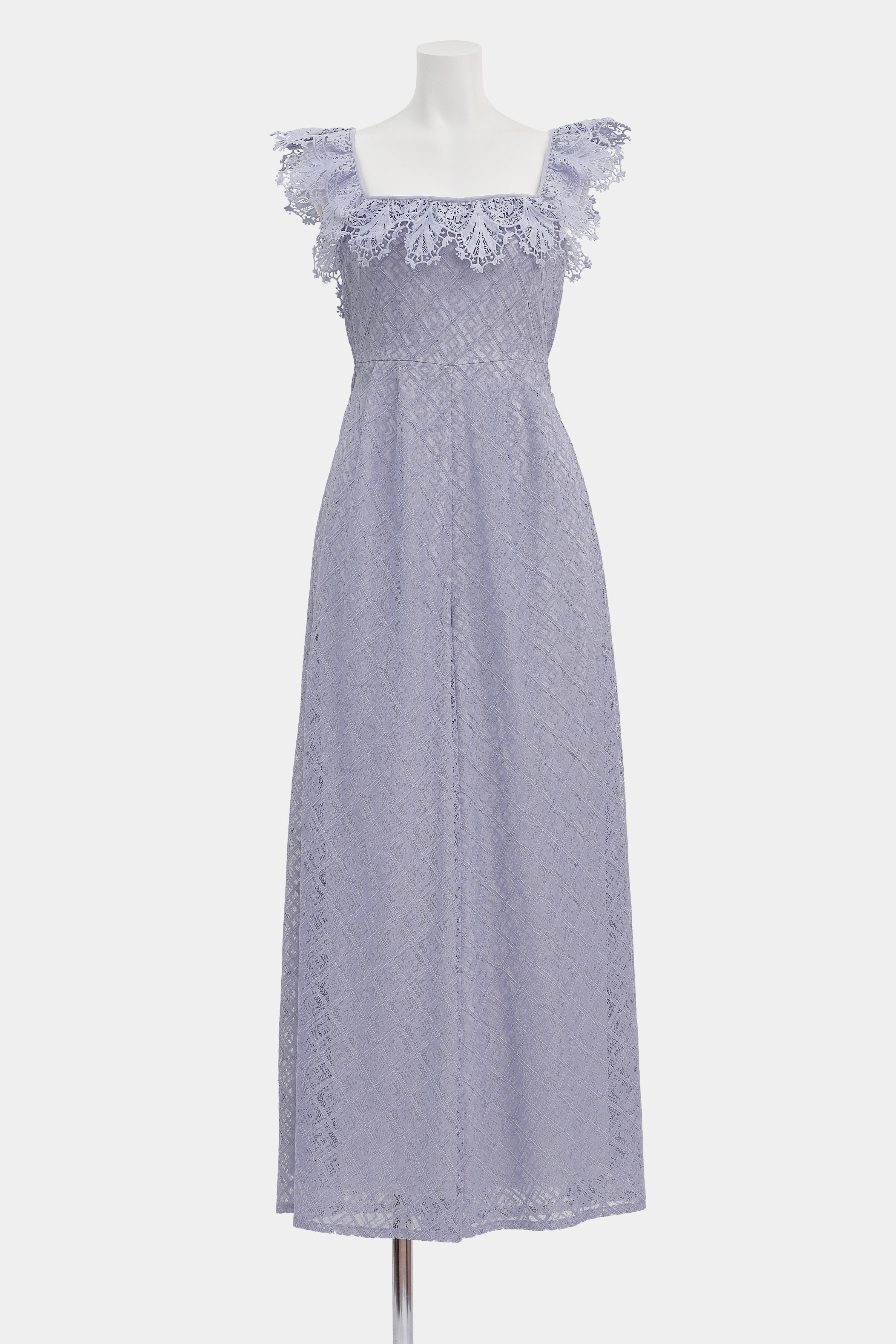 デコルテ周りに施したスカラップレースは、華やかで女性らしい美しさを引き出す3way仕様。