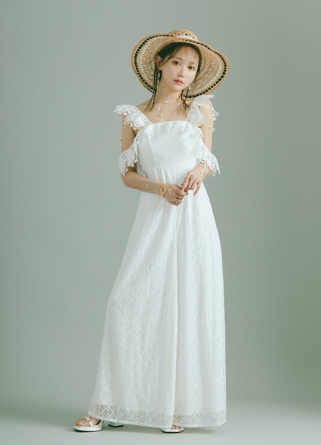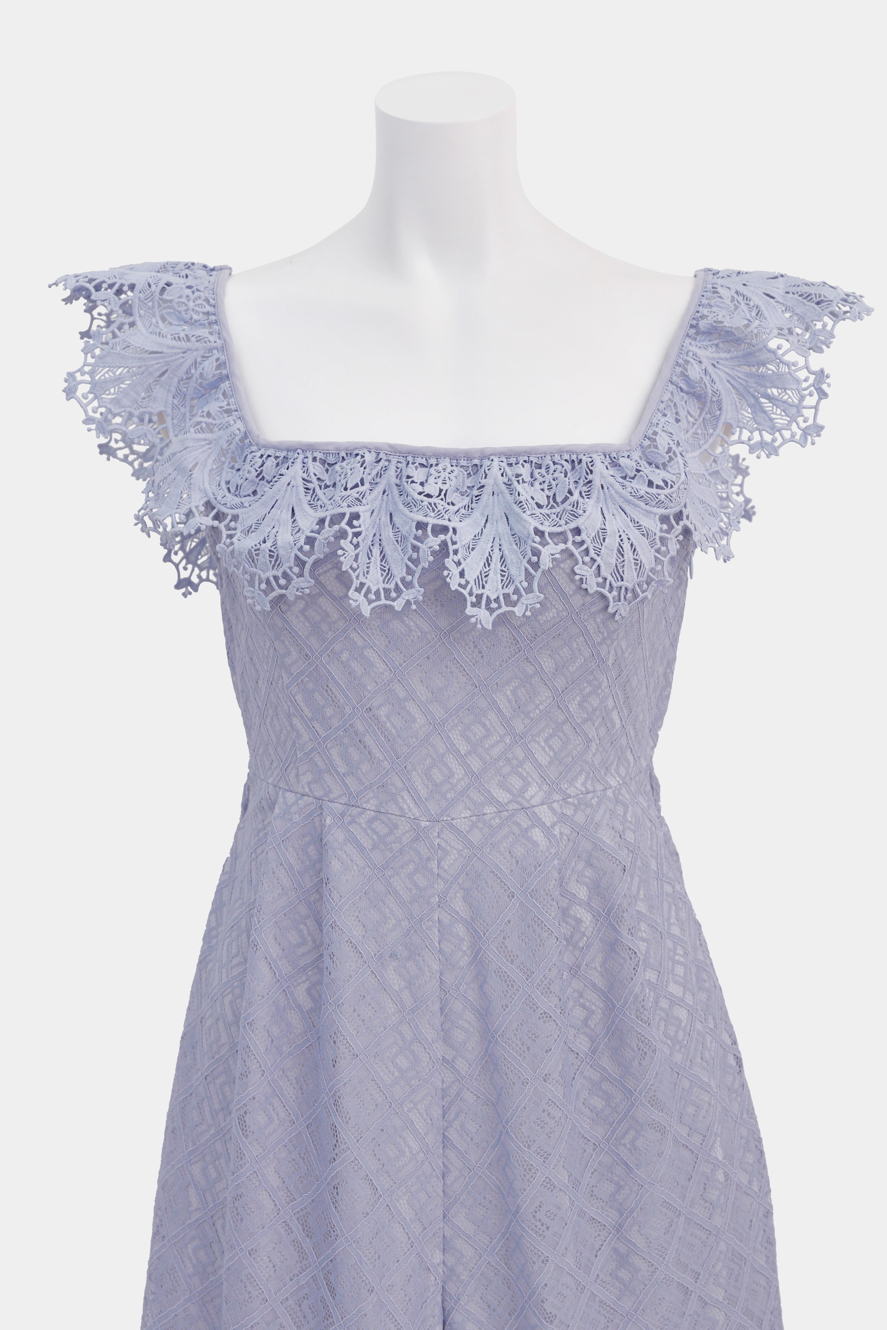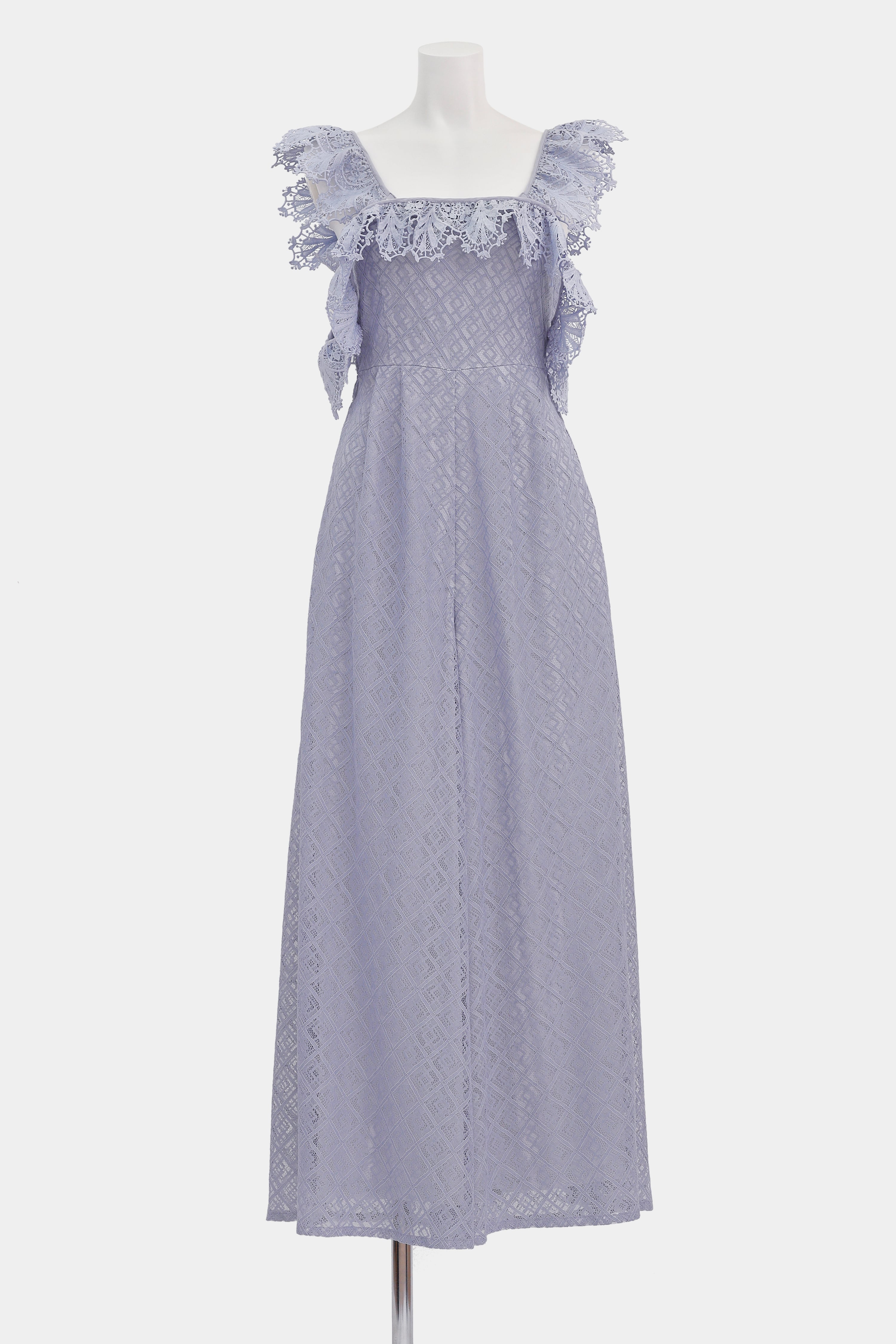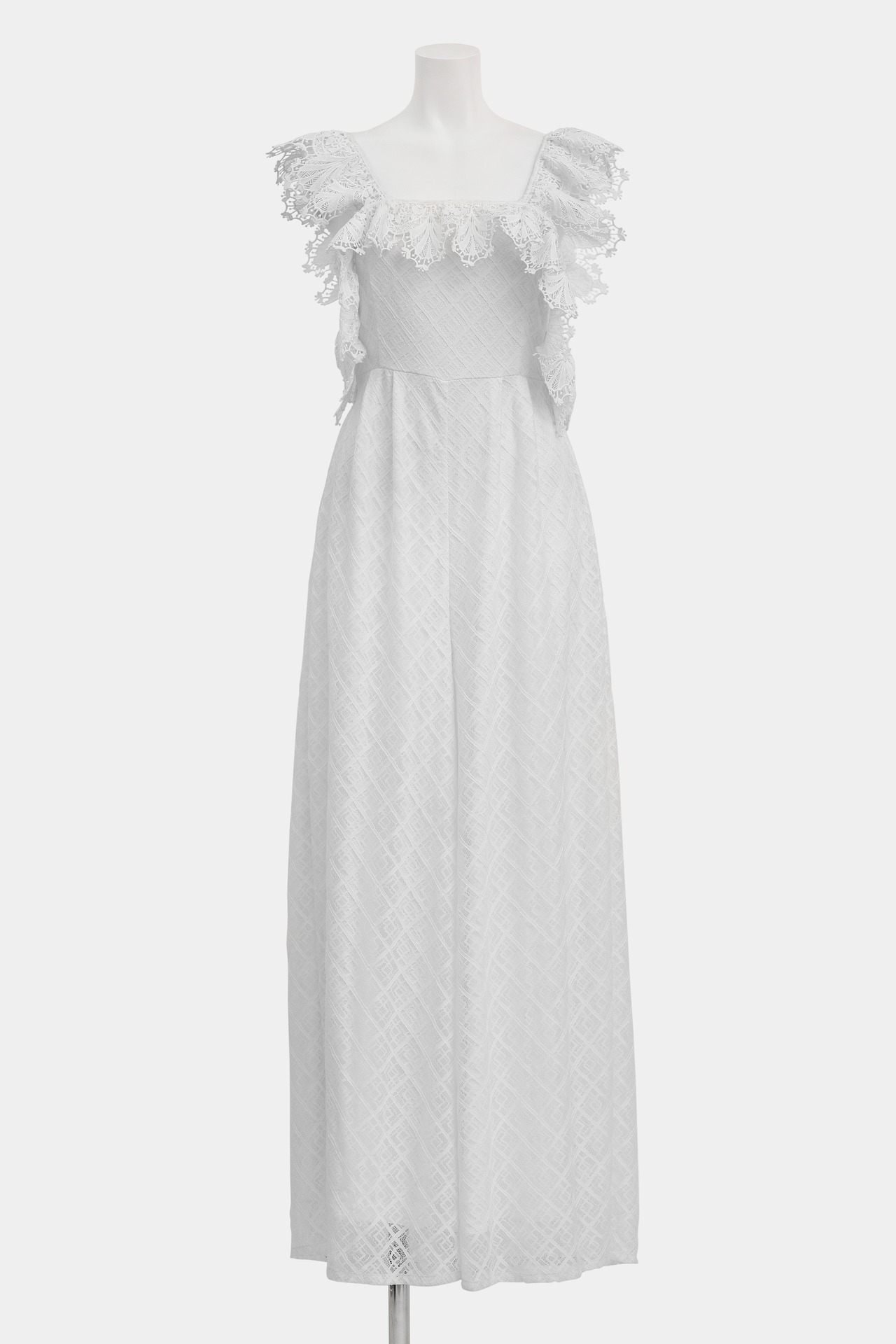 余すところなくレースをふんだんに使用した、スカート見えするAラインのオールインワン。