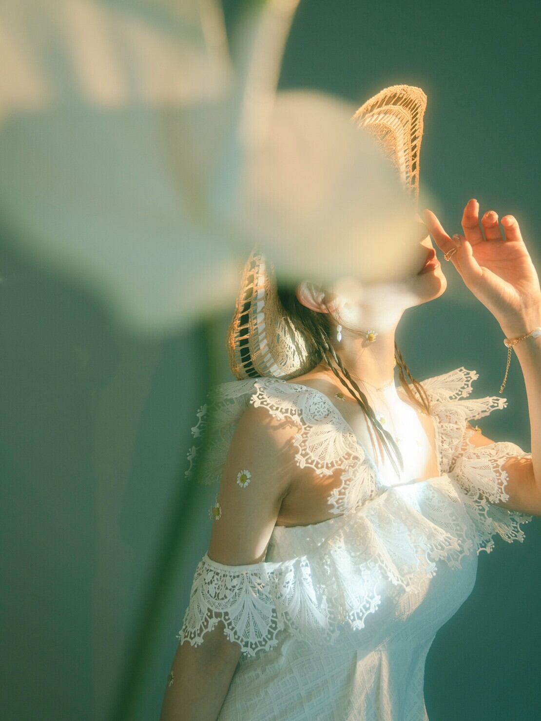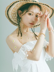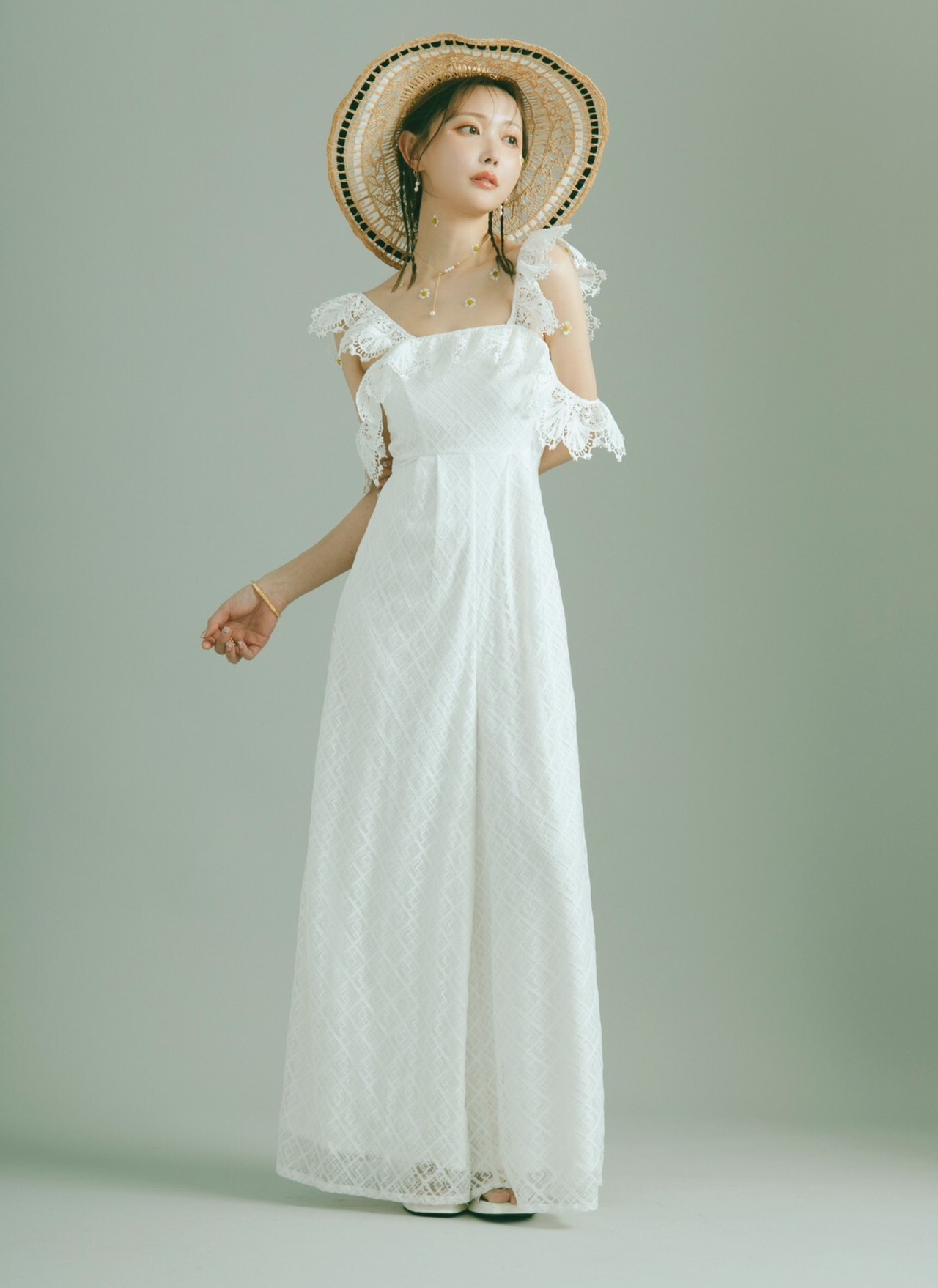 二連となったスカラップレースの片方を落として、ドレッシーなオフショルとして。