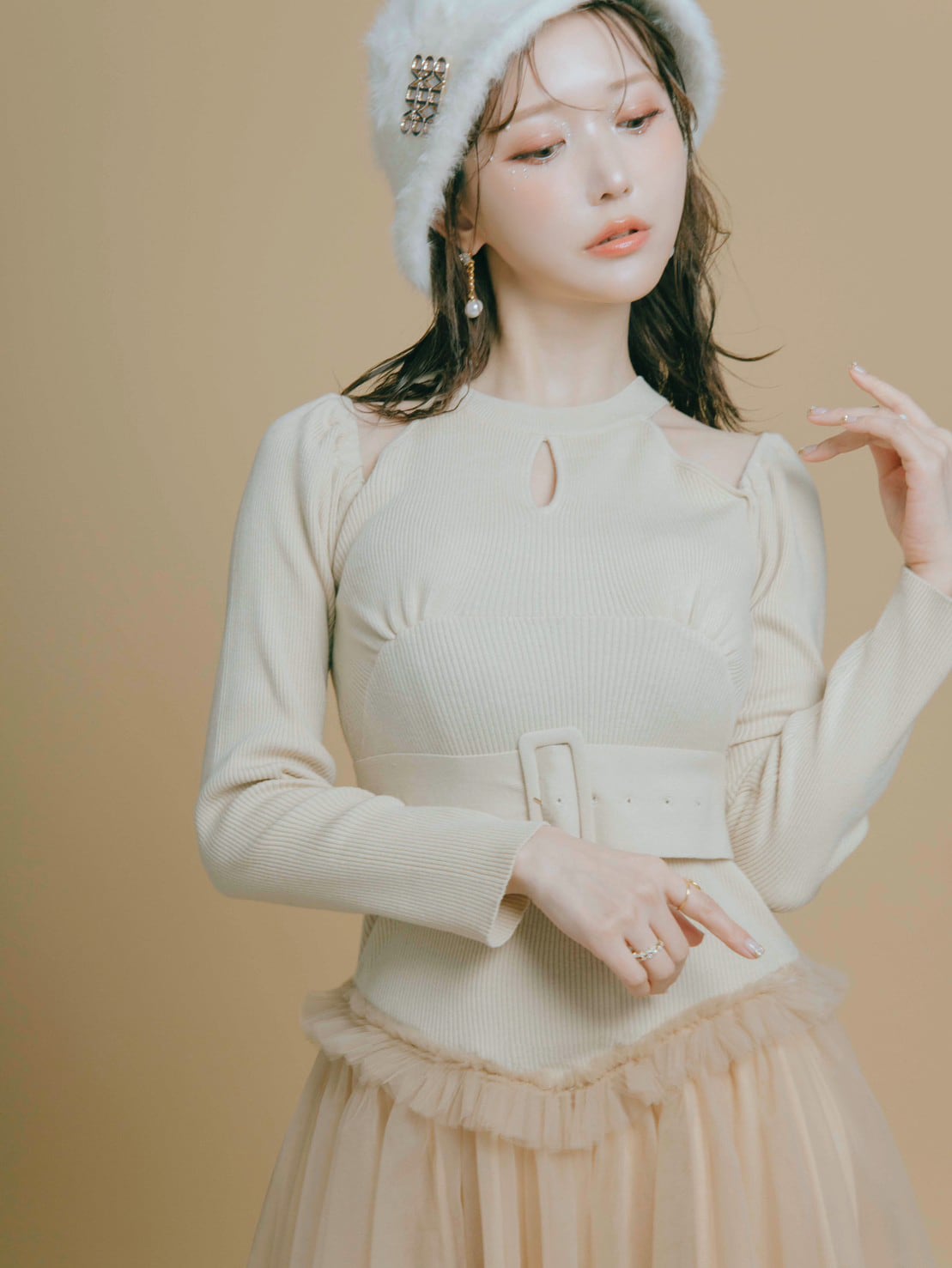 ウエストベルトは、ふんわりと広がるチュールスカートのボリュームとのバランスを保ち、メリハリのあるスタイルアップを叶えます。
