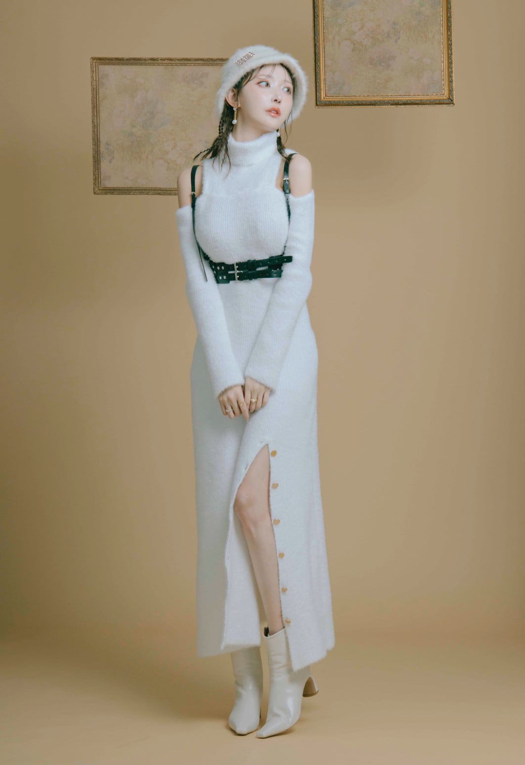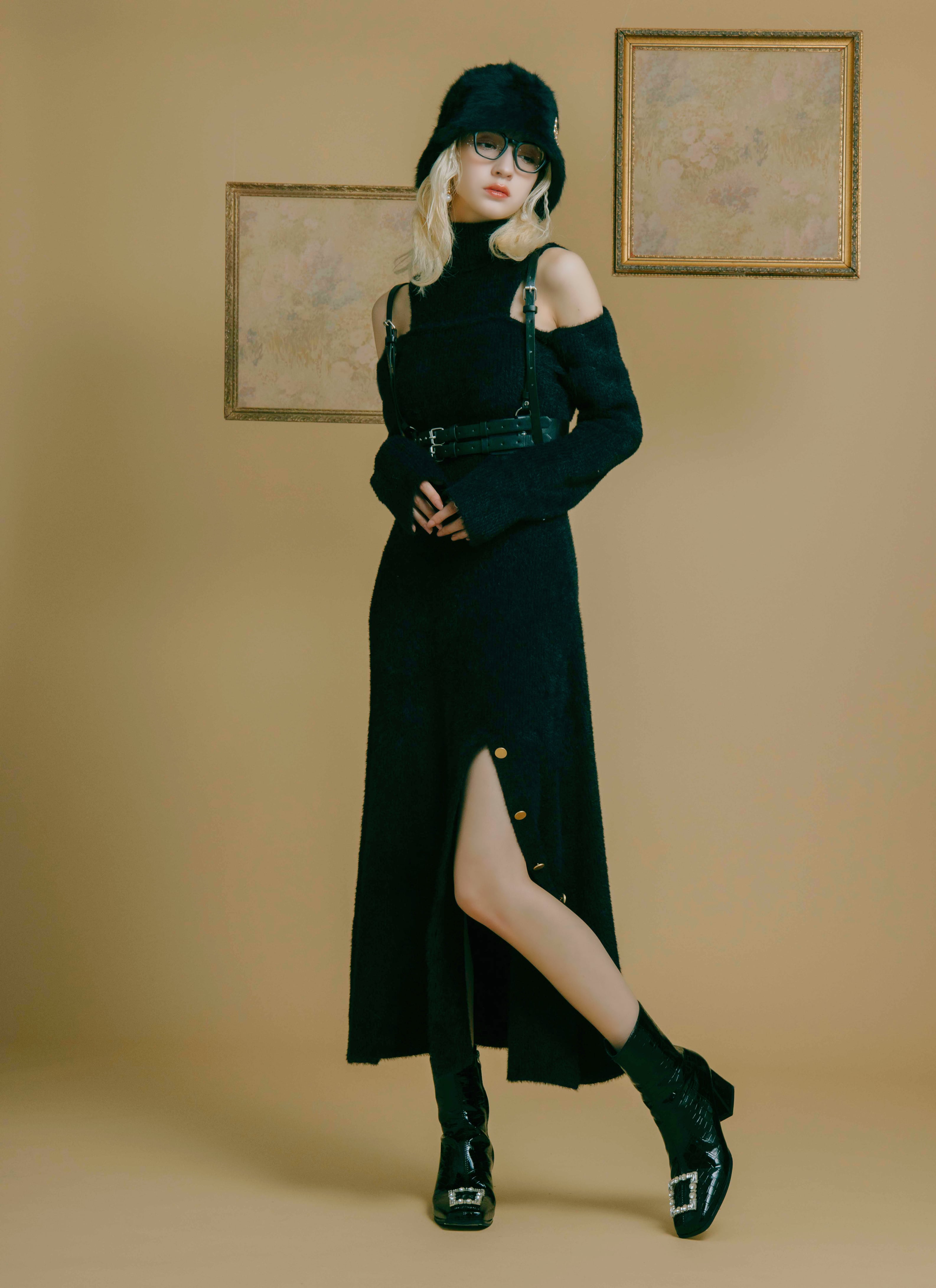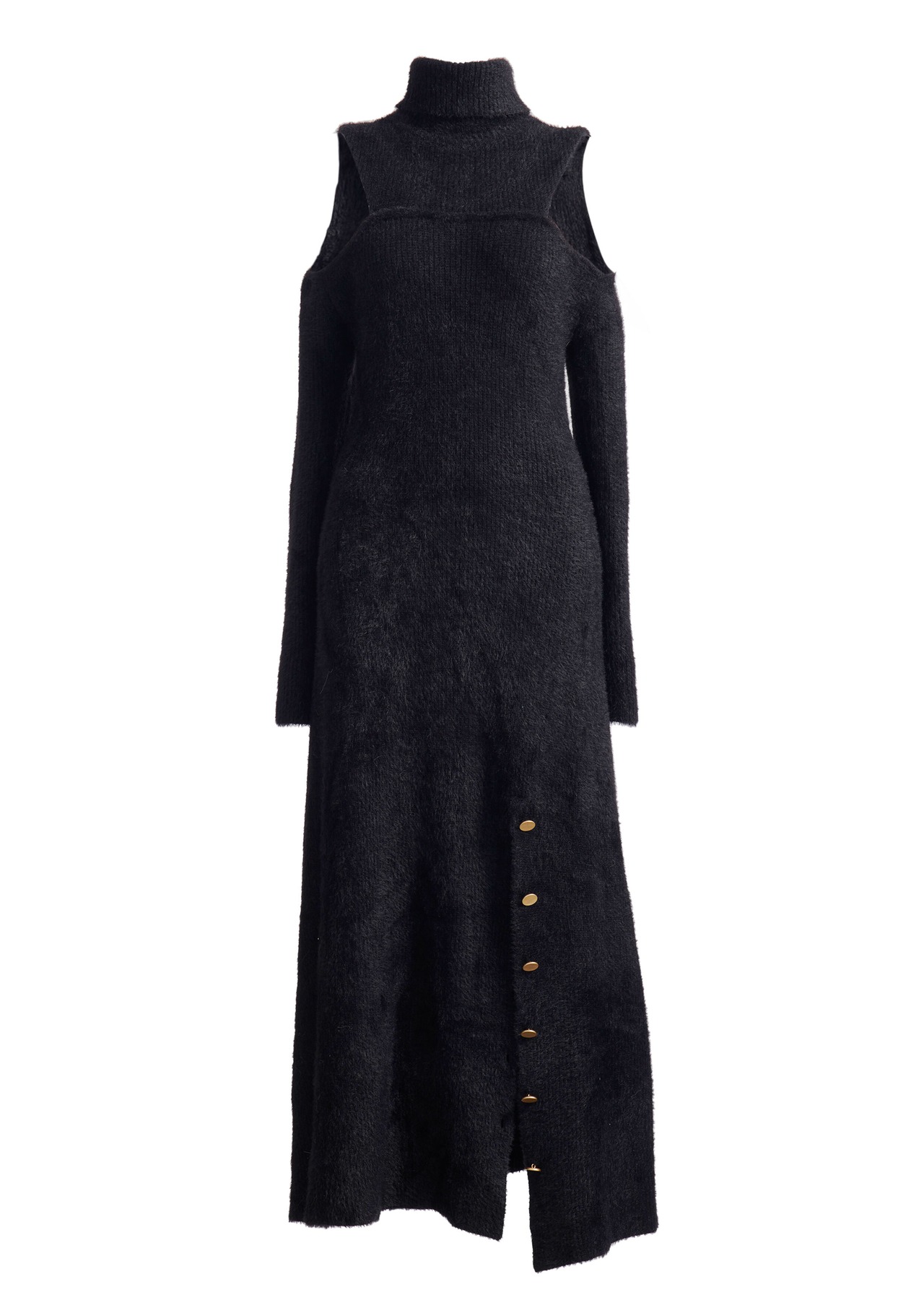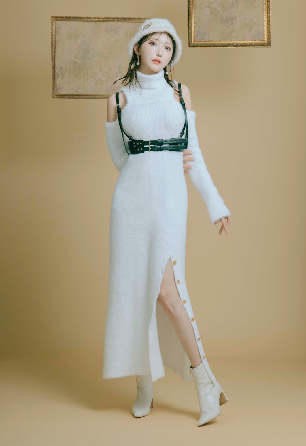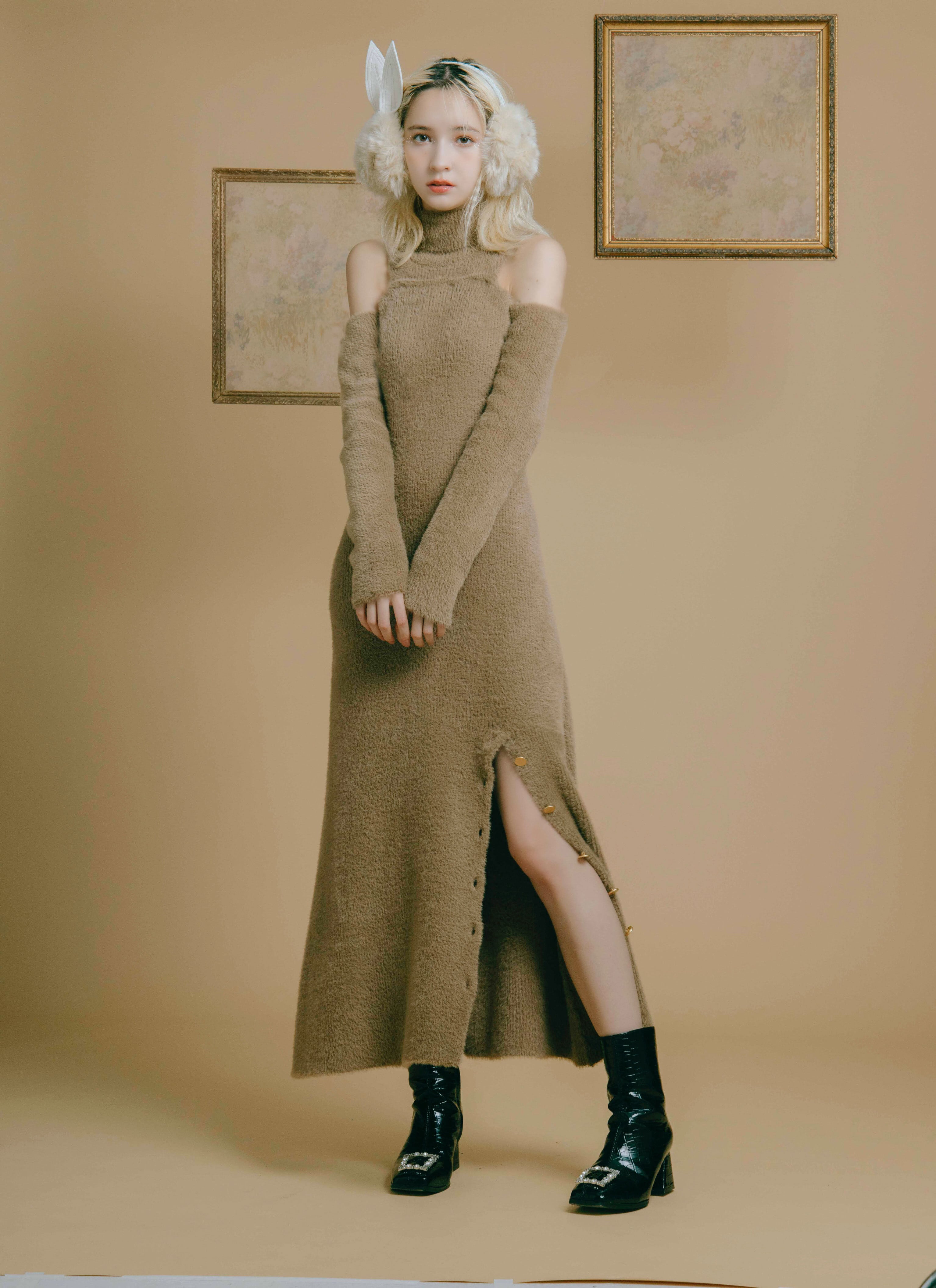 ふんわりと肌触りのよいシャギーが、ホリデームードを高めてくれるニットドレス。